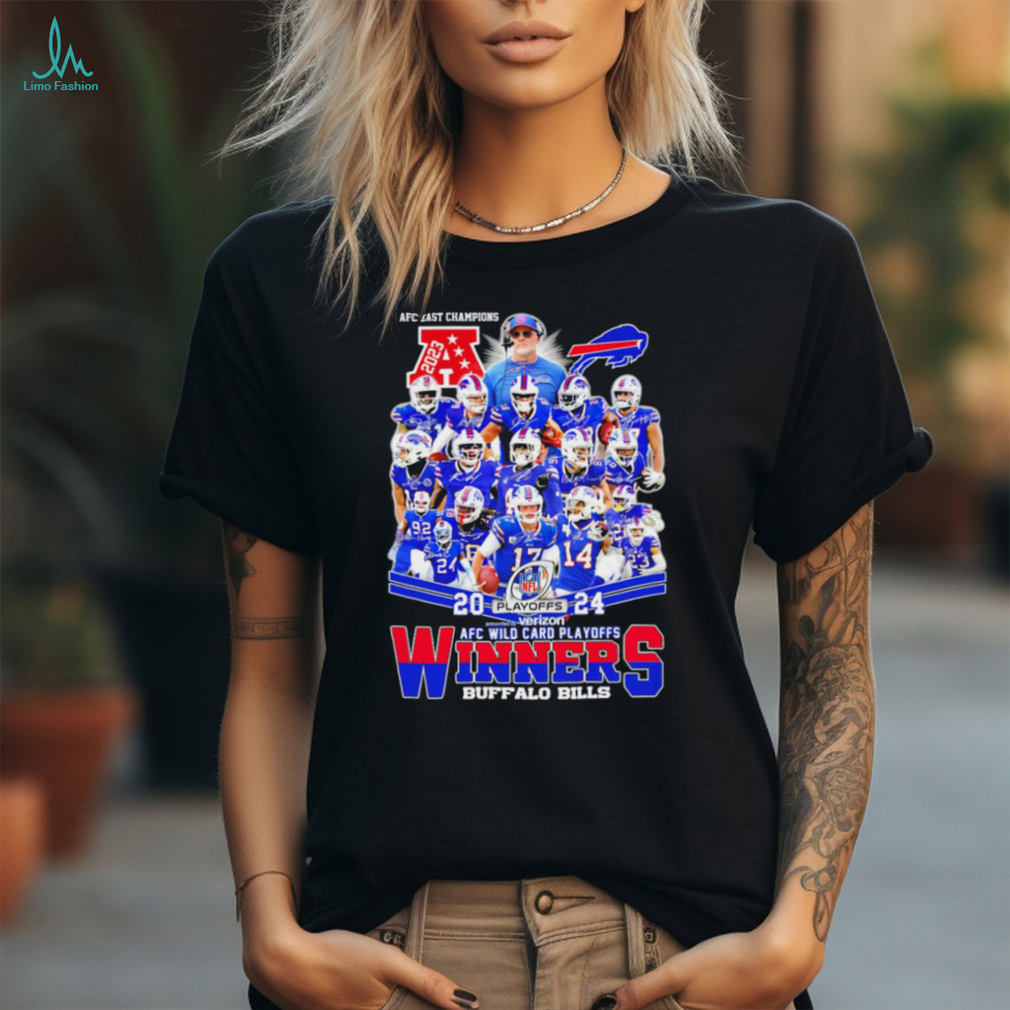 NFL 2024 AFC Wild Card Playoffs Winners Buffalo Bills player signatures logo shirt