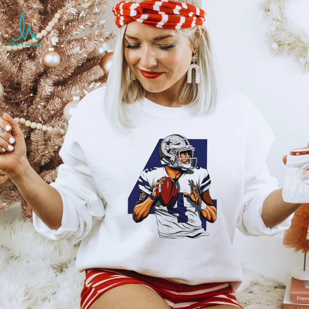NFL Dallas Cowboys football Dak Prescott number 4 player action pose logo shirt