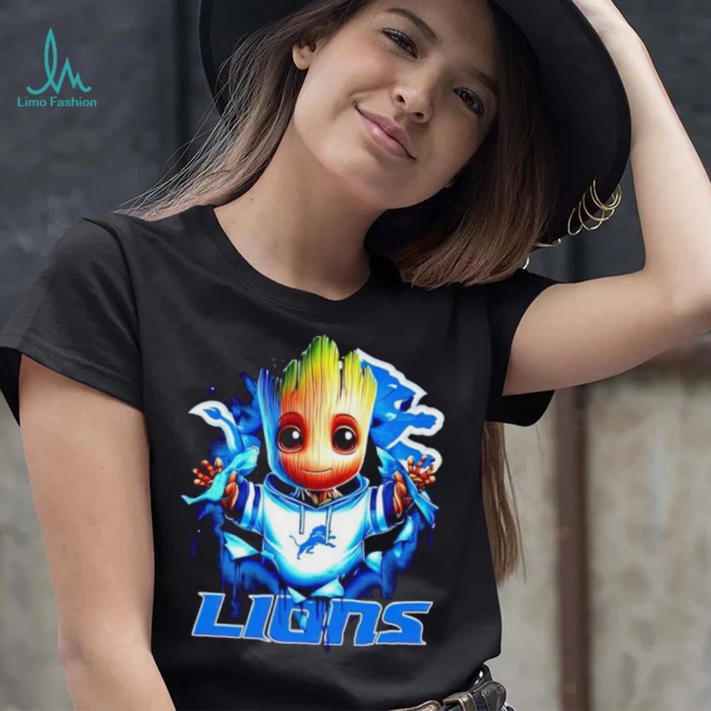 Christmas trees are sold all over before christmas. There are several types of NFL Detroit Lions Baby Groot shirt : There are cultivated trees that have been cut and shaped to be dense and ideal in shape. And there are naturally grown trees right from the nearby forest. They are not as “pretty”, because they are just how they happened to grow. I value the natural trees, because they give me a better feeling about the connection with my natural surrounding. I give the highest value to a tree I have cut myself, but this isn’t always possible, so I usually buy a natural domestic tree.