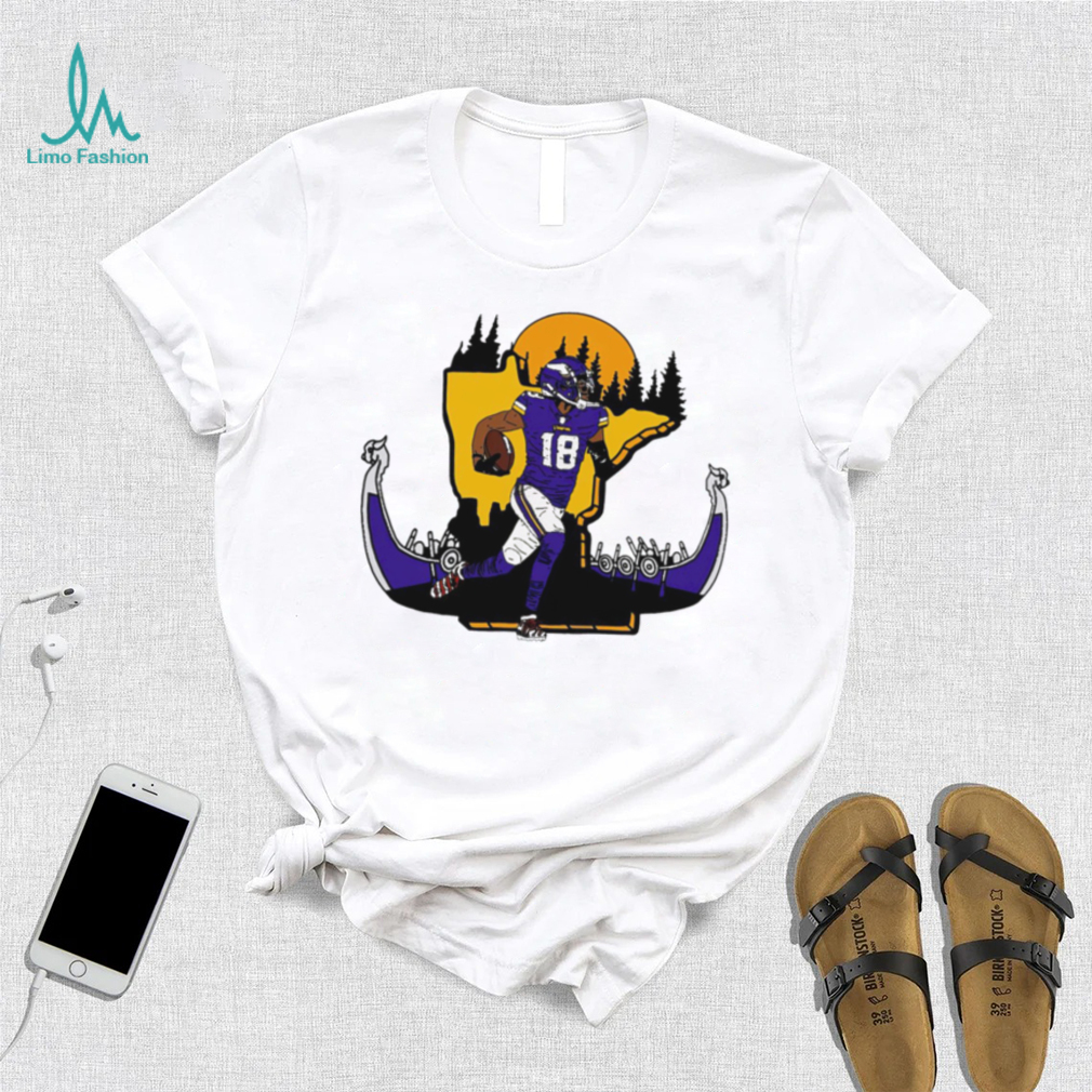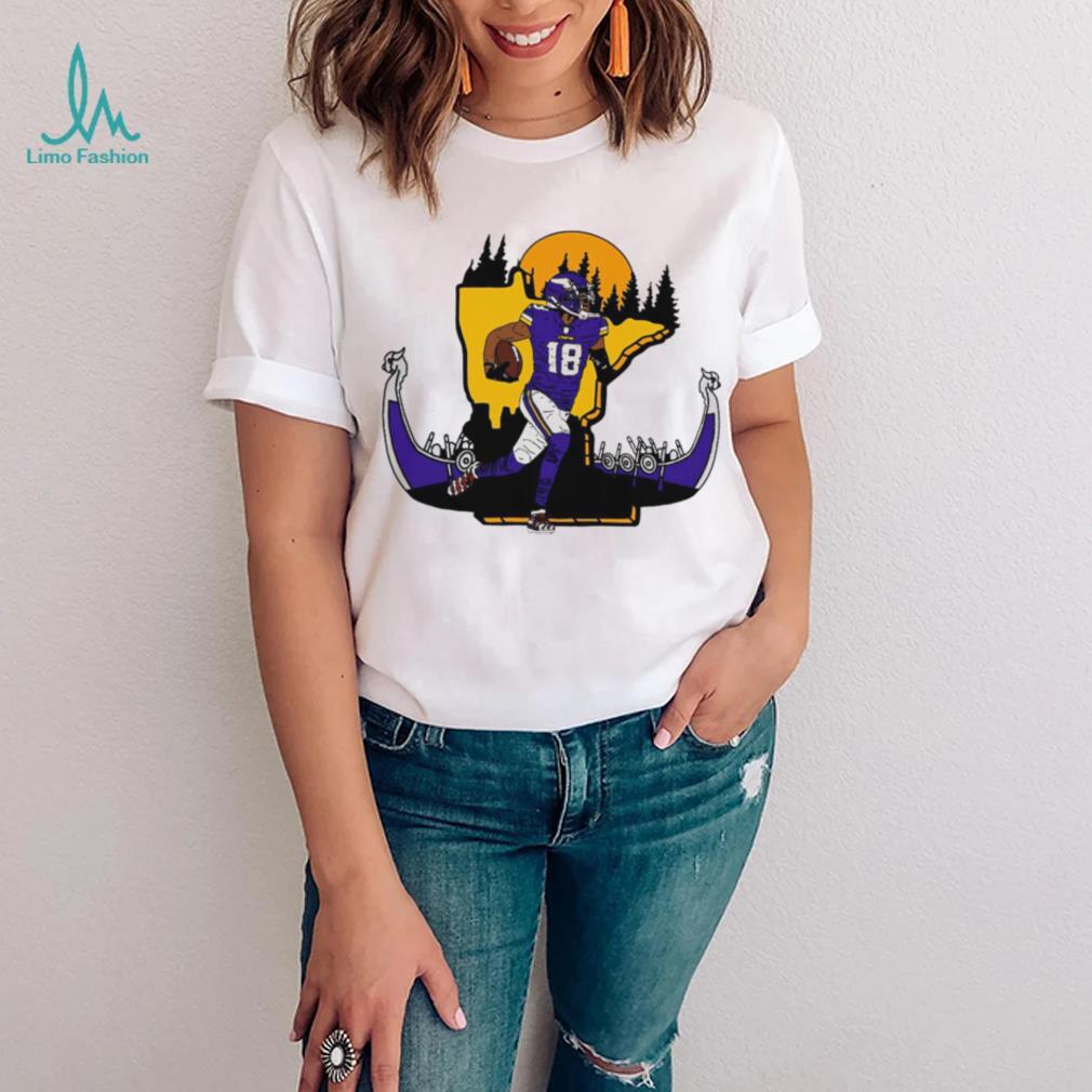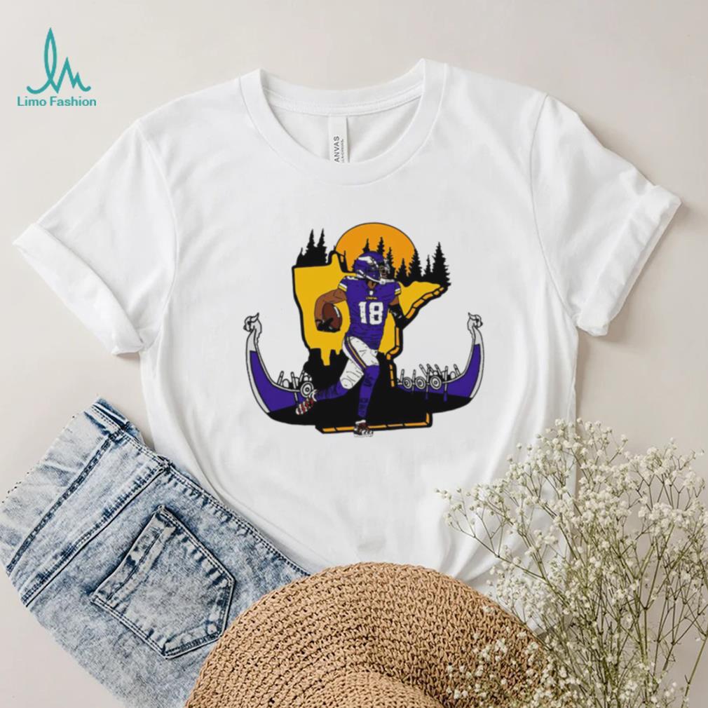 NFL Minnesota Vikings football Justin Jefferson player number 18 signature cartoon retro shirt