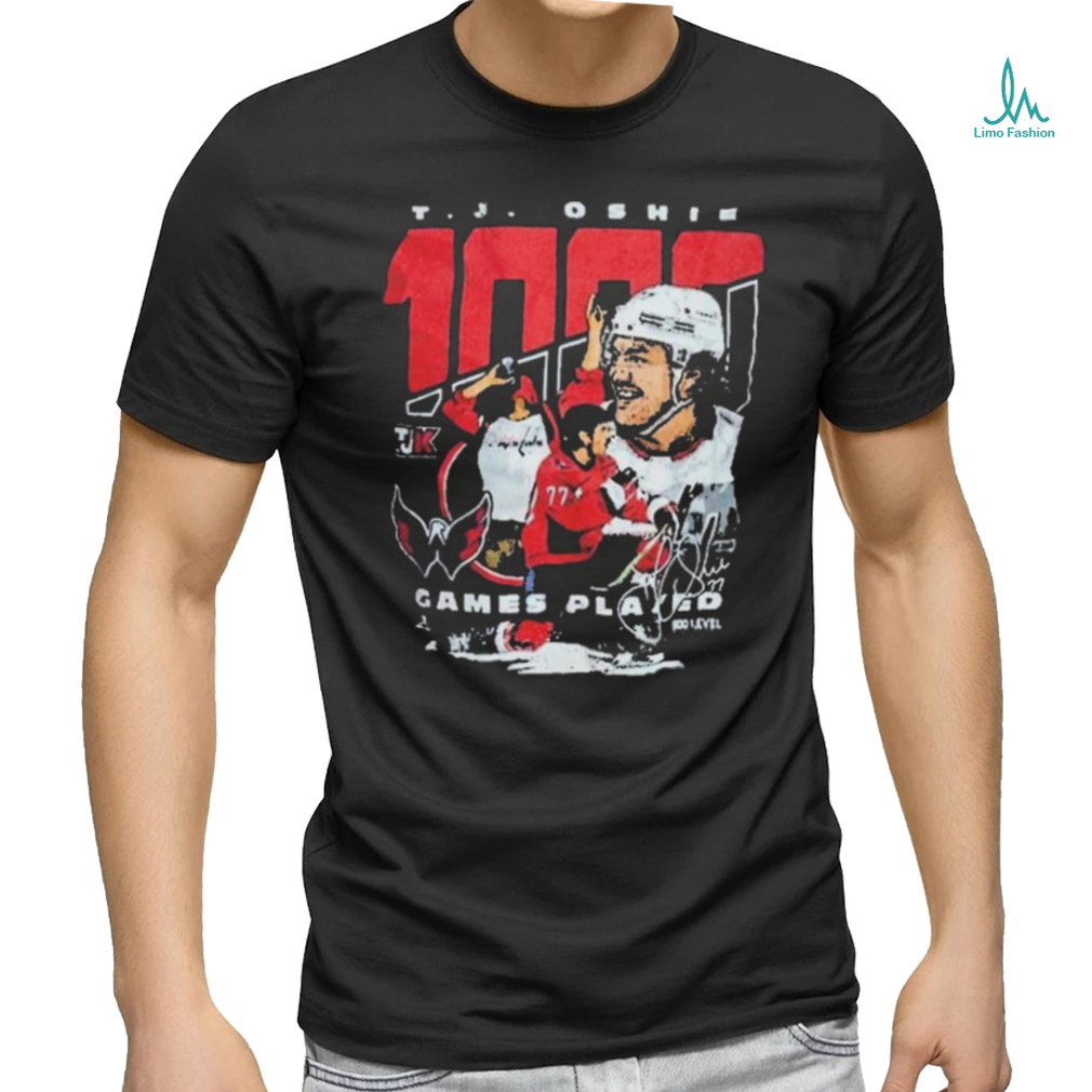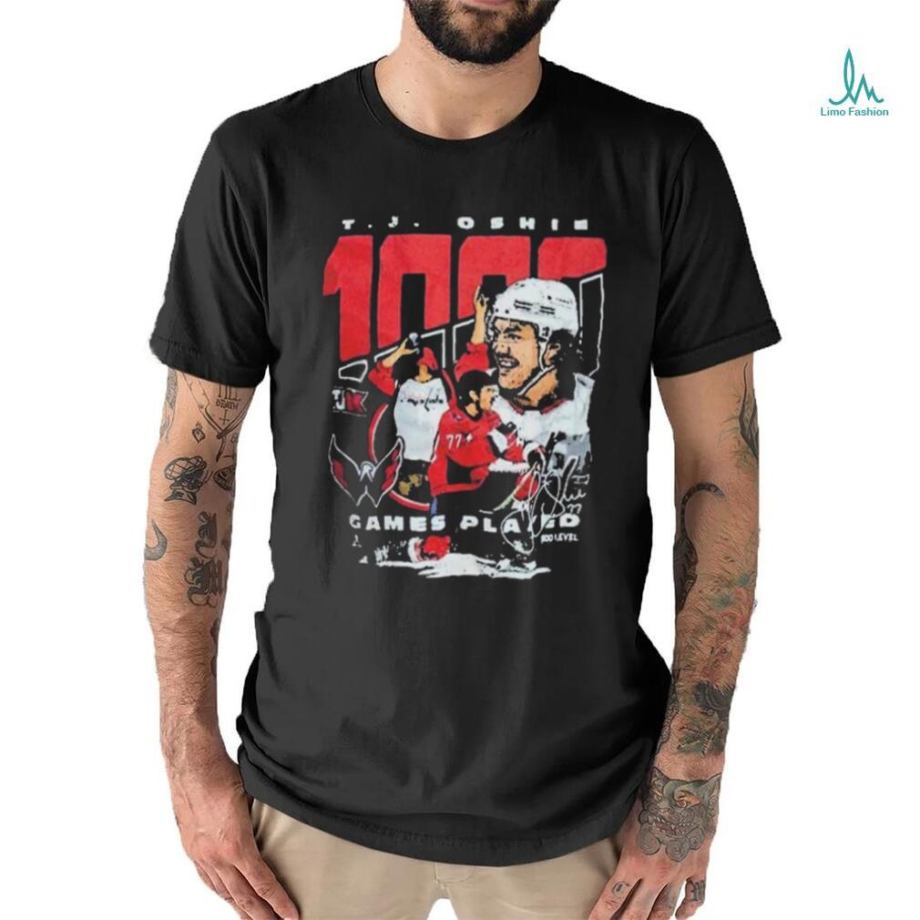 I can go out for dinner and within a NHL Honor T J Oshie 1000 Games Played For Washington Capitals TJ1k Shirt hour drive I can find awesome Italian food, good French restaurants, German, Polish, Indian, Thai, Vietnamese, Mexican, Ethiopian, Greek or Malaysian food and may others. Granted in NYC you can probably find all of that in a 3 block radius in NYC, but it is nice to have. I can go to a supermarket and find jicama, lemon grass and other exotic ingredients. If I can’t find it in the supermarket there is probably an ethnic food store within a short drive where I can. I can spend a day at the beach with many thousands of others laying blanket to blanket, or go to Island Beach State Park where the crowd is controlled and the scenery and sand dunes probably don’t look a lot different from what the first European settlers encountered when they reached the shores of NJ.