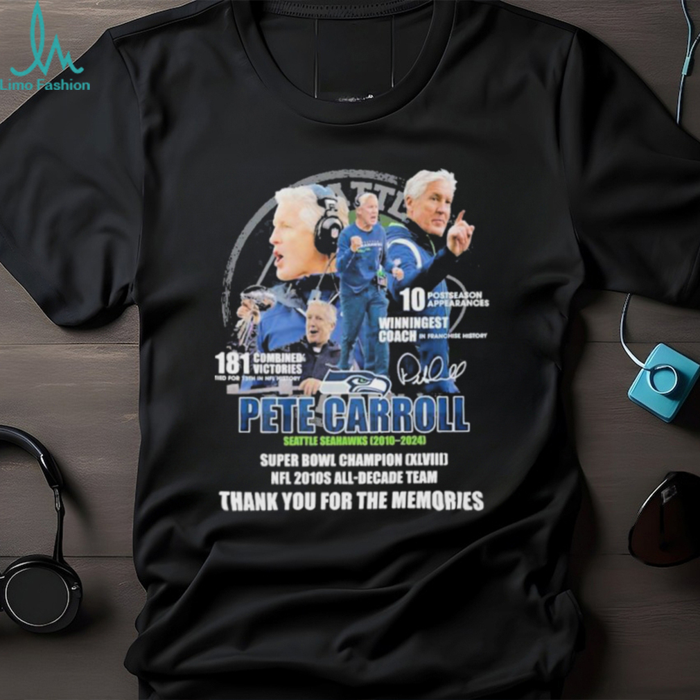 ()Nice pete Carroll Seattle Seahawks 2010 – 2024 Super Bowl Champions XLVIII NFL 2010s All Decade Team Thank You For The Memories T Shirt, Hoodie, Sweater, Vneck, Unisex and T-shirt