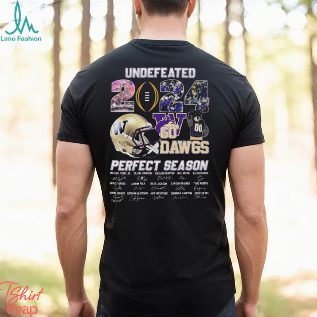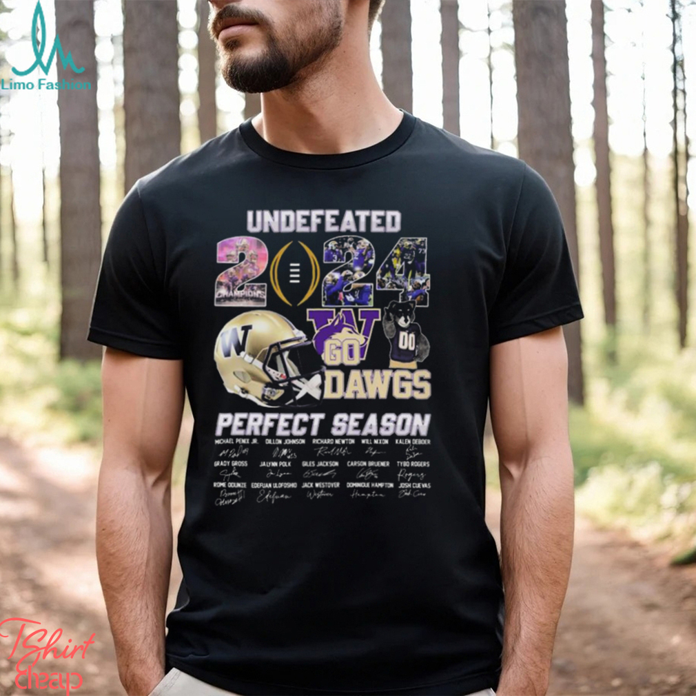 My niece hasn’t responded since September, despite me using three different mediums (SMS, WhatsApp and Facebook Messenger). My brother responds once every couple weeks but never actually answers the Nice washington huskies mascot undefeated 2024 go dawgs perfect season signatures shirt. Today I threw my hands up and bought my niece’s partner an Xbox gift card (which I think is what he asked for last year) and my nephew and partner a gift card where they can choose their own experience. Hopefully they can sell the gift cards if they wouldn’t use them. I was hoping to get them something more personal, but hell, I’ve been asking for ideas for three months. With a week to go till Christmas – we’re going down on the 19th – I was getting desperate. Aside from that, this year has been…strange. I no longer buy for my father and stepmother and sisters: it seems too odd and unbalanced to be working myself to the bone to pay my mom’s bills, when my dad and sisters all have money, and then going without so I can buy them gifts. And I don’t currently have any friends – I’ve lost them all in the last year – so no expenses there, either.