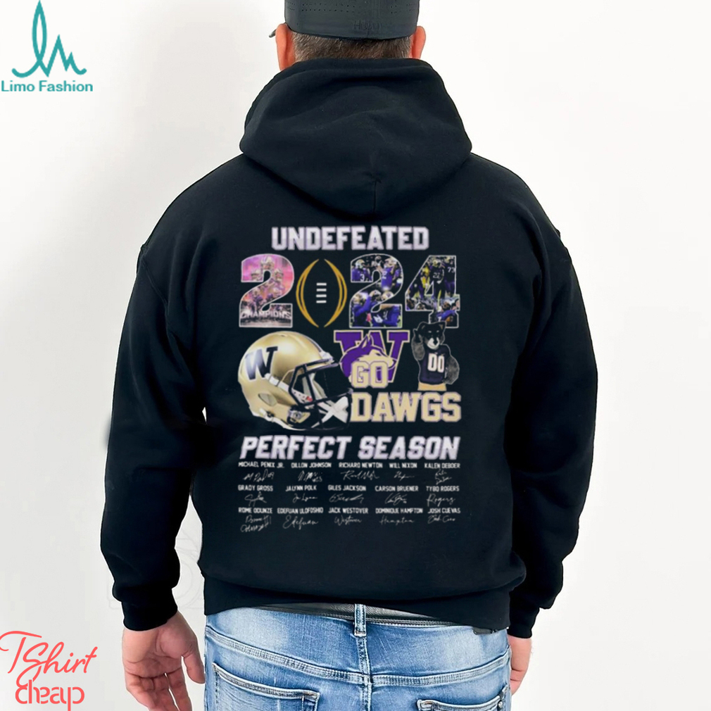 Nice washington huskies mascot undefeated 2024 go dawgs perfect season signatures shirt hoodie, tank top, sweater and long sleeve t-shirt