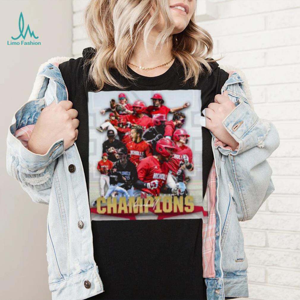 All those things are not unique for the Nicholls State University 2023 Southland Tournament Champions Shirt, but combined they make it very important. Ask questions in different categories (themes, characteristics, etc) and request respondents to take these questions per category or in a randomized order.Perform calculations on scores per question, category, and/or for the whole assessment. For instance, you can add a score to each answer which allows you to give very granular feedback. Show variable outcomes depending on the score. For example: show a specific message for the category with the highest score. With the outcome message, you can also show the different categories, ranked by score.