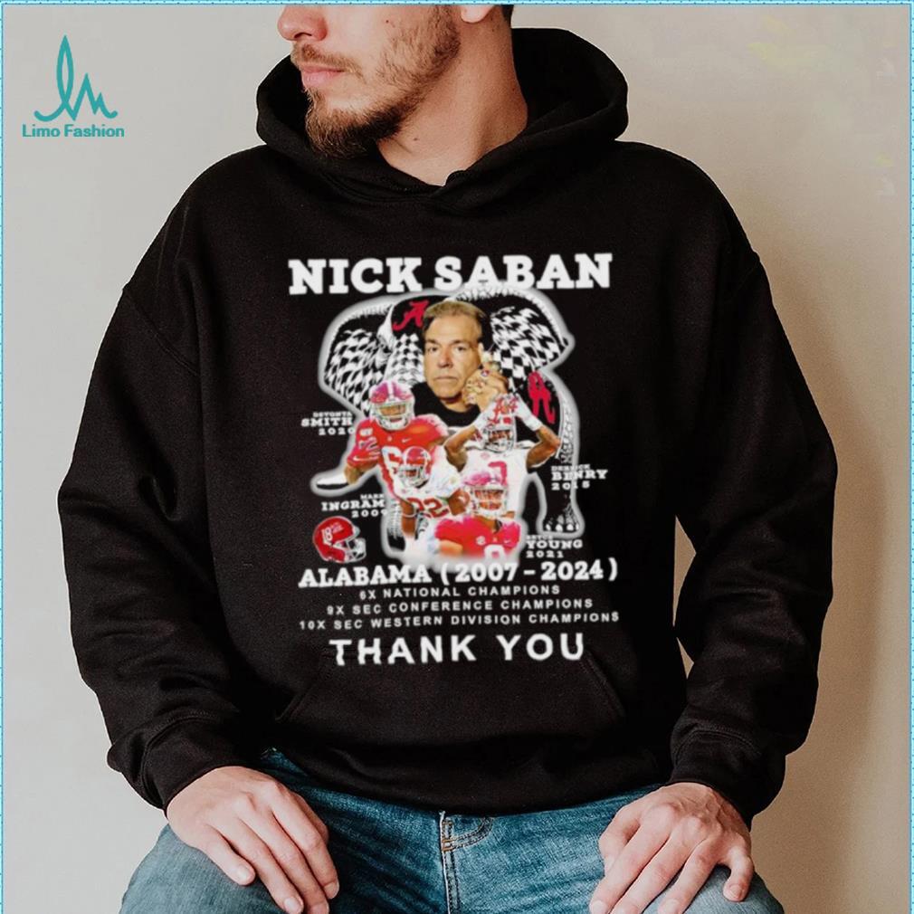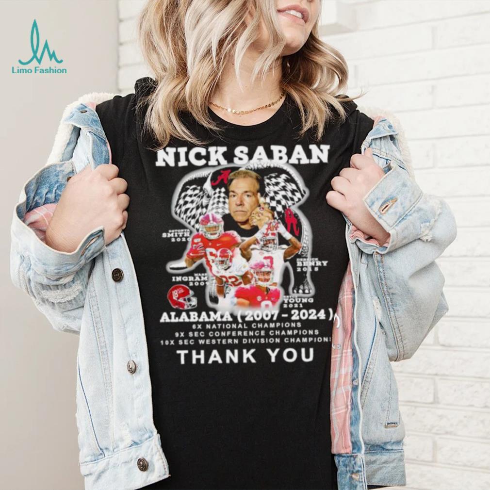 But with the spending you will increase the production of Nick Saban Alabama 2007 2024 thank you shirt. Either way, in the macroeconomy, “Spending” is what leads to wealth production, “not spending” reduces wealth production and does nothing to increase money saved. That money saved will exist whether used for spending or not. So on either front, if the goal is to increase savings, and increase the net production of wealth, “not spending” is the wrong advice. “Not spending” will not increase the savings that is the preservation of investment, and it will likely not increase the net production of wealth, in fact it is more likely to decrease both. In the macro economy, “not spending” is more likely to have negative effect on the production of wealth and standard of living, than a positive one.