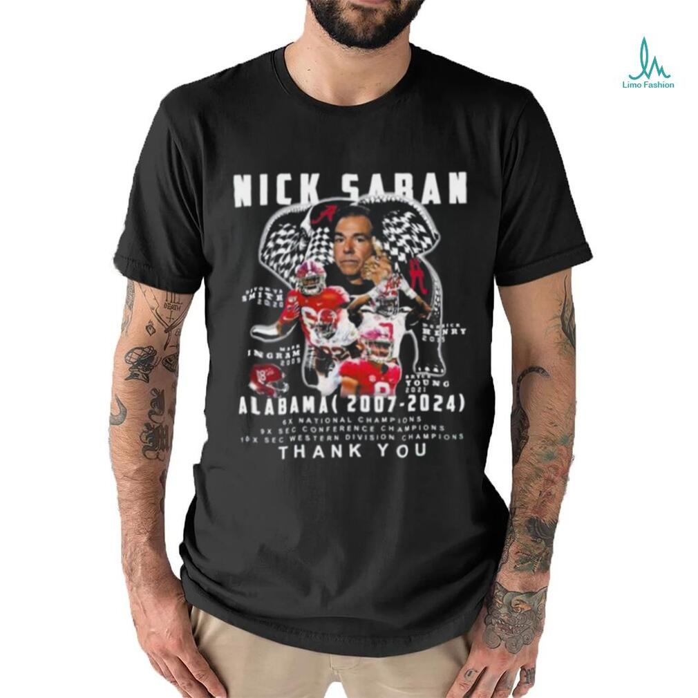 Nick Saban Alabama Crimson Tide 2007 2024 Thank You Shirt. Categories of this T-shirt is teejeep, Nick Saban Alabama Crimson Tide 2007 2024 Thank You Shirt from Dadyshirt ✓ Unique designs ✓ Large assortment ✓ Comfortable ✓ High-quality ✓ Easy to care for ✓ Available in a range of colours and styles for men, women ✓ Shop now ✓