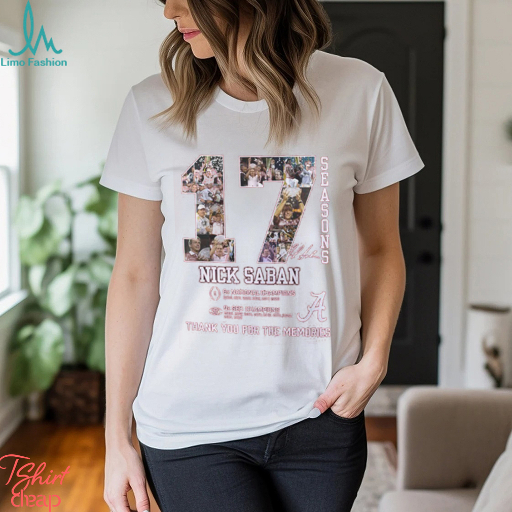 There is surely something is wrong with the Nick Saban Coach 17 Seasons Shirt of those who raise this kind of questions at all! Being politically and ideologically opposed does not mean an inveterate social and religious vengefulness. What was envisaged there is a certain kind of ideological framework for the country based on its age-old ethicality and prevent India from losing its identity in the flood waters of the anarchical and hegemony-anchored Western Culture. It is not because secular forces fight against ISIS or Al-Qaeda that secularists systematically despise Islam or its followers. Nor is it because India is engaged in a protracted conflict with Pakistan that India despises Pakistanis wholesale. Do understand that India has a very unique cultural ethos. All so, that the Western social ethos does only encouraging baser instincts of people and subtly acquires power over them in the name of controlling the consciously unleashed waywardness in the name of law.