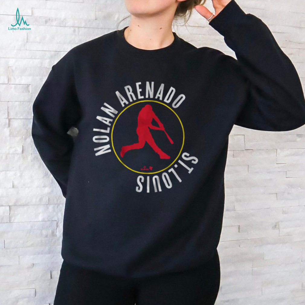 I held him against me as we drove home. I Nolan Arenado Swing Circle Shirt cleaned his eyes and when I put him down for the first time in his new home he took off like a bat out of hell! He must have sensed he was already in charge. My brother who also lived with me bitched about me getting a cat but I didn’t care. My house, my rules and now the kitties house. It didn’t take long for Exodus (who my brother named after a popular cologne at the time) won my brother and his partner over. He laid in their bed, he followed them around when I wasn’t home, he won them over quickly as he did with everyone going forward.