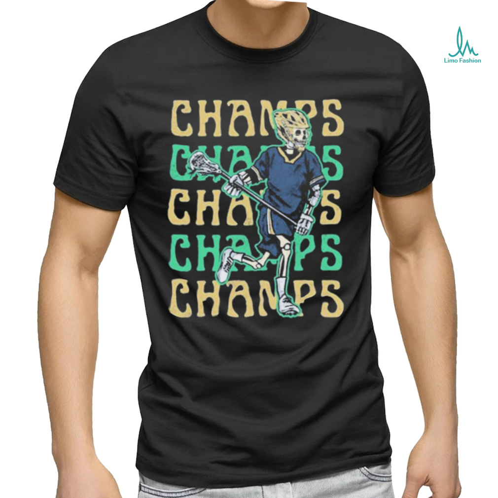 Don’t get me wrong, plants are an important part of Notre Dame Fighting Irish Skeleton Lacrosse Champions Shirt climate change. Forests, mangroves, wetlands, grasslands, peatlands, etc, are all important storage sites of carbon. Flora in these places take up carbon to produce their structure. However, the largest reason why they are important to protect has less to do with storing additional carbon, and more to do with keeping more carbon from leaving the surface. If a forest is cut down, then the carbon that was once stored in the trees is freed up to renter the atmosphere (especially if burned). For this reason, many studies suggest protecting what is left is priority number 1, planting more is priority number 2. Either way, more must be done to allow for plants to be an effective countermeasure against CO2 increases.