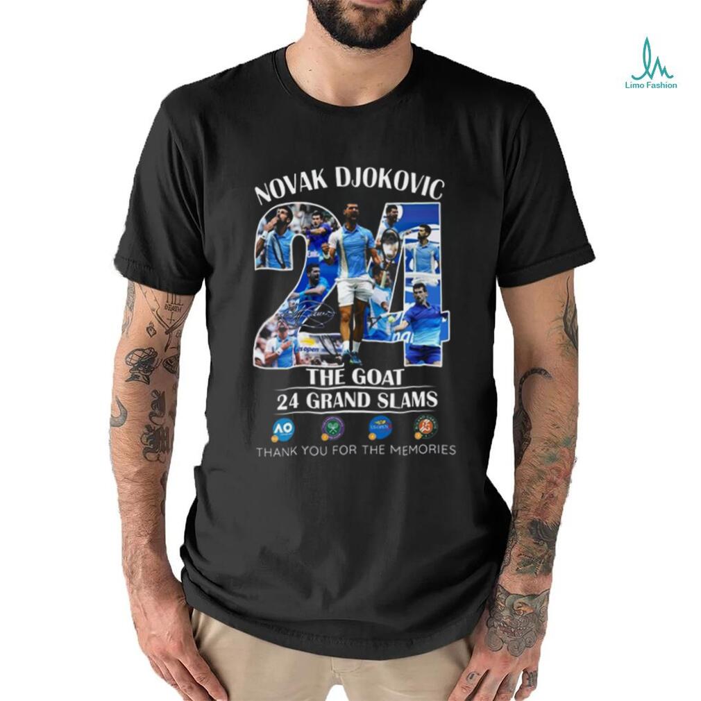 Novak Djokovic The Goat 24 Grand Slams Thank You For The Memories Unisex T Shirt. Categories of this T-shirt is teejeep, Novak Djokovic The Goat 24 Grand Slams Thank You For The Memories Unisex T Shirt from Dadyshirt ✓ Unique designs ✓ Large assortment ✓ Comfortable ✓ High-quality ✓ Easy to care for ✓ Available in a range of colours and styles for men, women ✓ Shop now ✓