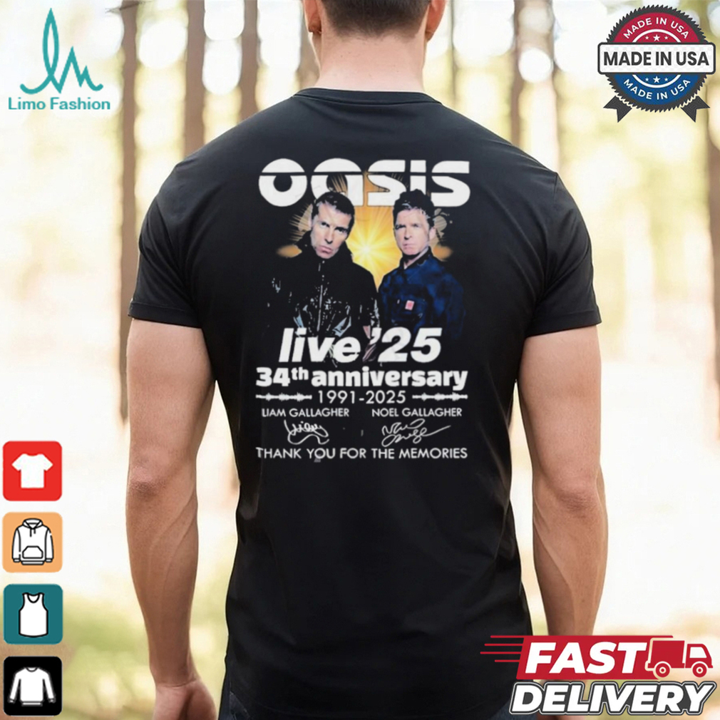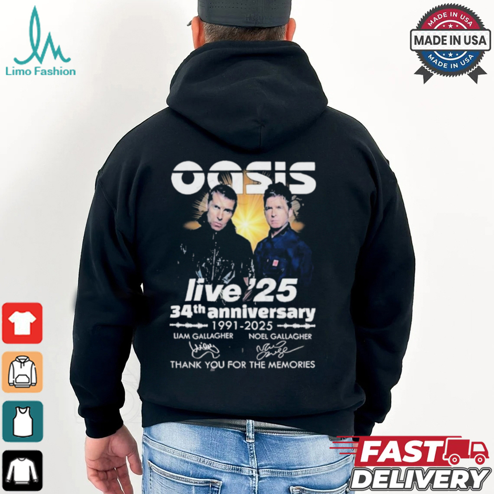 Oasis Live ’25 34th Anniversary 1991 2025 Thank You For The Memories T Shirt hoodie, tank top, sweater and long sleeve t-shirt