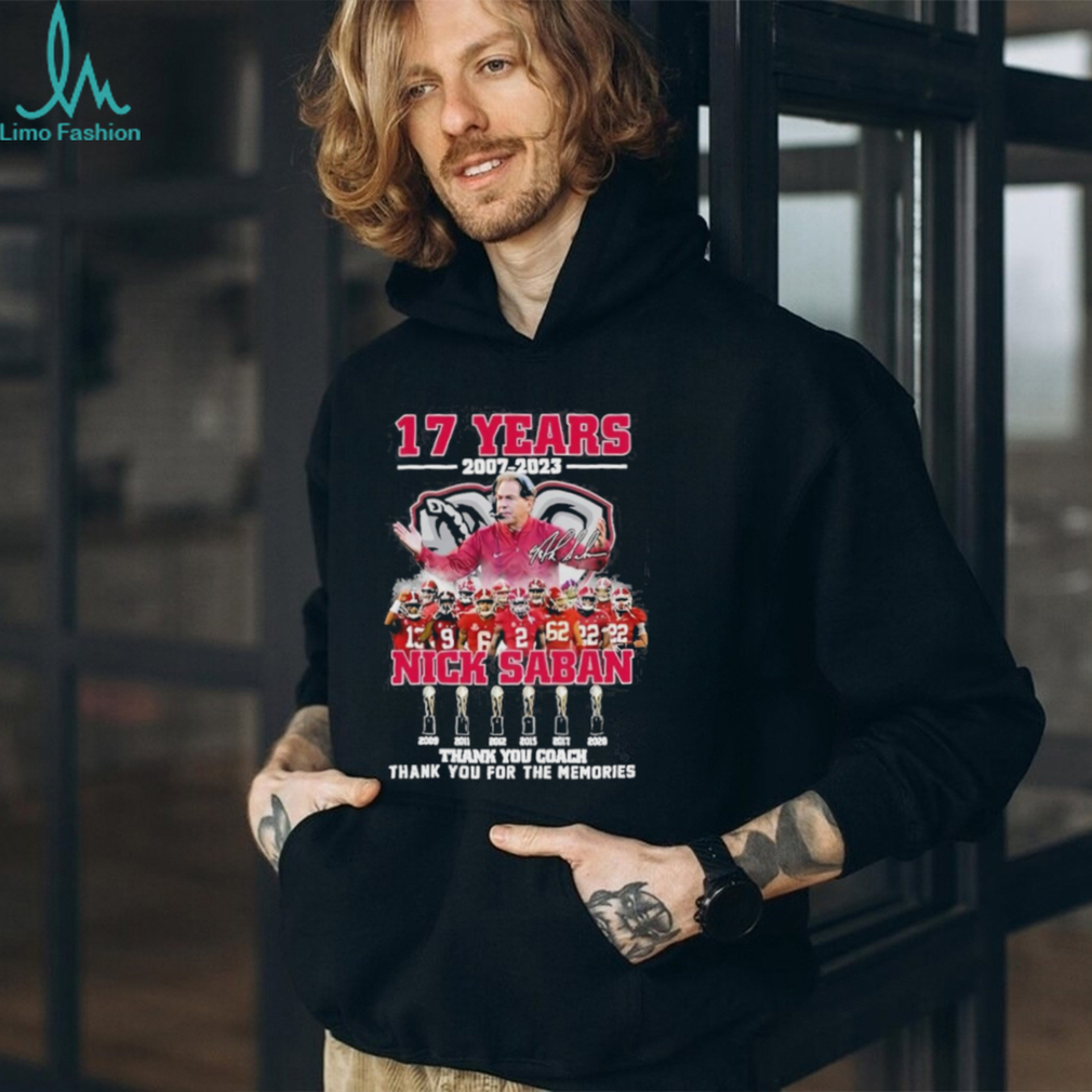 Official 17 Years 2007 2023 Nick Saban Thank You Coach Thank You For The Memories Signature Shirt, Hoodie, Sweater, Vneck, Unisex and T-shirt