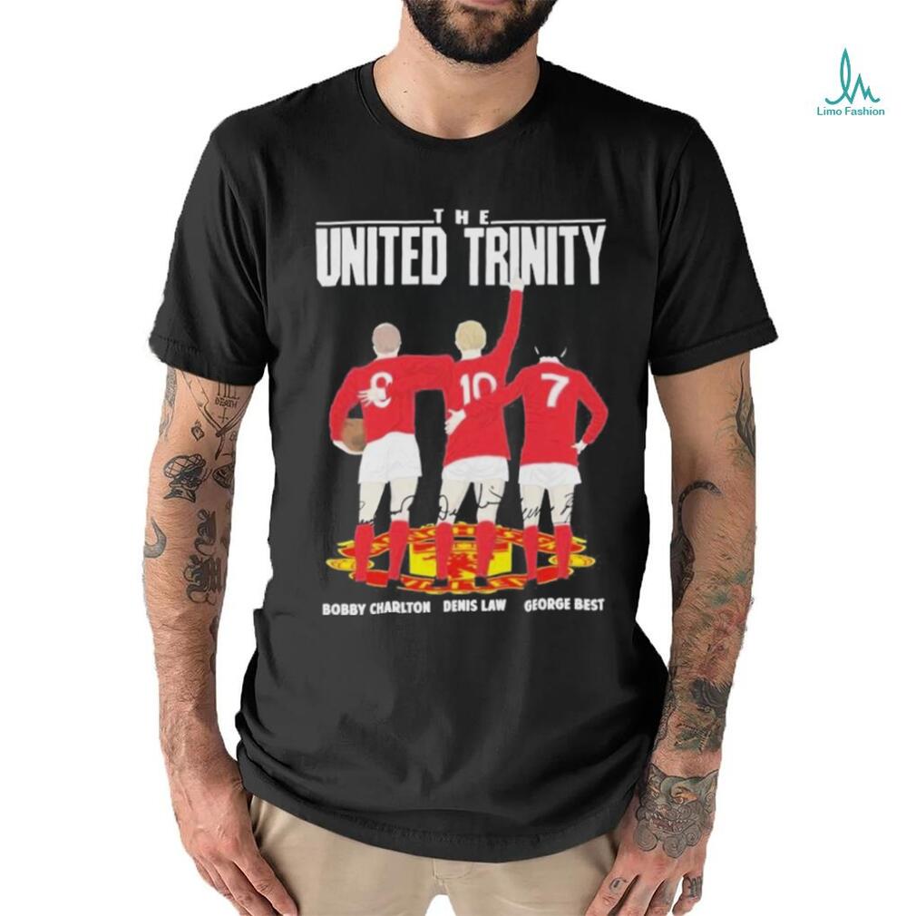 ()Official 2023 The United Trinity Bobby Charlton Denis Law George Best T Shirt, Hoodie, Sweater, Vneck, Unisex and T-shirt