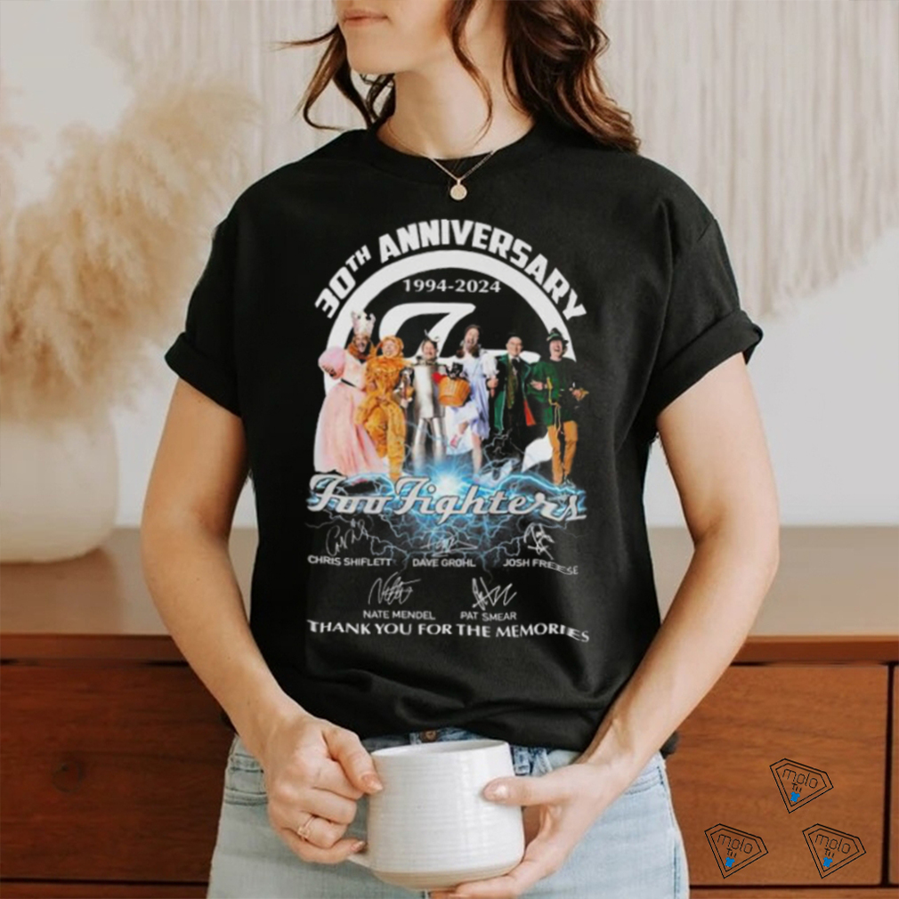 I can go out for dinner and within a Official 30th Anniversary 1994 2024 Foo Fighters Thank You For The Memories Signatures Shirt hour drive I can find awesome Italian food, good French restaurants, German, Polish, Indian, Thai, Vietnamese, Mexican, Ethiopian, Greek or Malaysian food and may others. Granted in NYC you can probably find all of that in a 3 block radius in NYC, but it is nice to have. I can go to a supermarket and find jicama, lemon grass and other exotic ingredients. If I can’t find it in the supermarket there is probably an ethnic food store within a short drive where I can. I can spend a day at the beach with many thousands of others laying blanket to blanket, or go to Island Beach State Park where the crowd is controlled and the scenery and sand dunes probably don’t look a lot different from what the first European settlers encountered when they reached the shores of NJ.