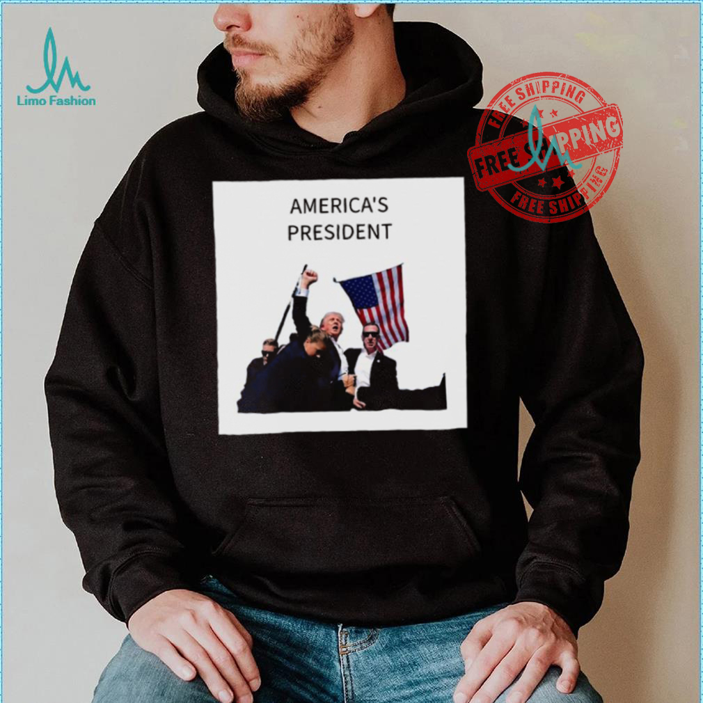 Around 11 AM, the Official AmericaS President Trump Fist In Air T Shirt arrived. Several large, police officers approached us. They told us that they were going to shut down the operation as it was causing a huge traffic jam. I got a brainstorm, I asked the officer that appeared to be in charge if I could have a word with him (Note, I was in my hippie mode at this time). He agreed. I said, “These trees are free to anyone.” He said, “So what” I said “there are free to anyone, including the police department. You could pick up as many of the trees as you want and take them down to Watts (a very poor part of town) and give them away. Think of the PR you could get out of that.” The lights went on in his head and he turn around and talked to the other officers. I do not know what he said, but in a very short time, there were a lot more officers, but they were now directing traffic. Soon a large truck from the police department pulled up and they starting filling the truck with tress. They were already sending in an advance unit to prepare for the Christmas tree give away.