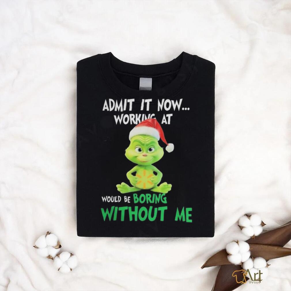 Official Baby grinch hat santa hug walmart admit it now working at would be boring without me logo Christmas T Shirt0