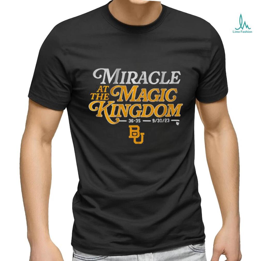 The current NHL leadership will only consent to moving one of the Official Baylor Football Miracle At The Magic Kingdom Shirt teams as an absolute last resort. Winnipeg only got the Thrashers when the situation in Atlanta became untenable and the team needed a last-minute landing site. This is why the Centre Videotron was constructed in Quebec City: to have an NHL-ready arena if and when another team needs to relocate.The NHL insists that it is committed to keeping its current franchises where they are: this is true until it suddenly isn’t. There may come a point when a club like the Arizona Coyotes has no option but to relocate, and Quebec City could indeed wind up with a new version of the Nordiques.The league is bullish on Houston, which has a local NBA owner who is eager to become part of the NHL. So the Texas city is often considered the top candidate for a relocated franchise. But it is more likely that Houston would enter the league via an expansion franchise (Seattle paid $650M to join and the other owners will be wanting another cash injection in the future). Quebec would probably get the next team that needs to relocate.
