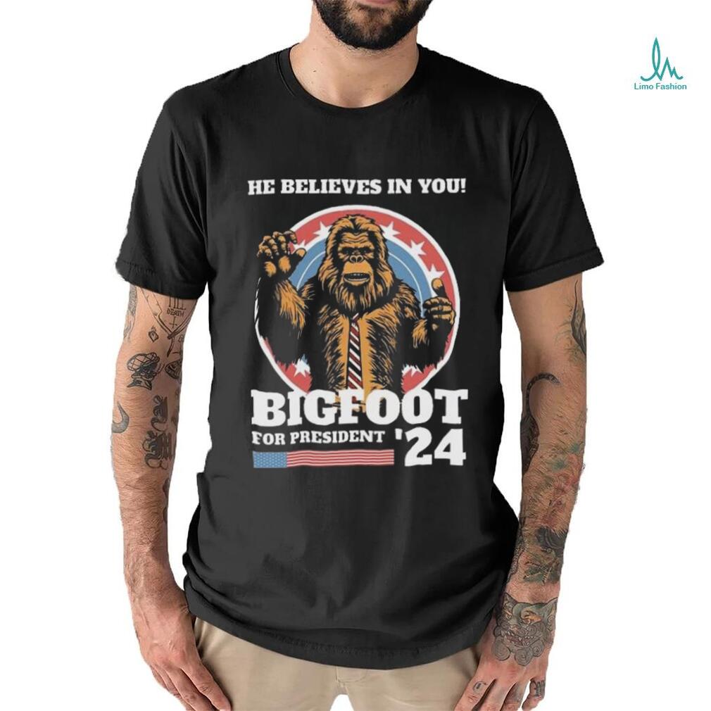 Official Bigfoot For President 2024 He Believes In You Sasquatch Shirt