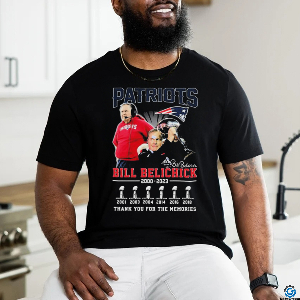 On most weekends I head off into the woods or go fishing. For a Official Bill Belichick Patriots 2000 2023 6 time Champion Thank You For The Memories Signature Shirt as densely populated as New Jersey, we have done a good job of protecting wide swaths of forests and swamps. Cool areas to explore. There are many rugged and beautiful hiking trails. My out of state friends who have visited and hiked with me repeat over and over “I can’t believe this is New Jersey”. They have visions of the NJ Turnpike corridor with refineries, warehouses and factories, etc. and the idea that there are wild, beautiful and rugged areas in New Jersey surprises them . The fishing can be incredible, whether bass fishing on lakes, or trout fishing on streams. There are backcountry streams where you can still find native strain wild trout. I can go out for breakfast and have real bagels. Not what most of the country thinks are bagels. They are not simply round bread with a hole in it. We get the chewy, dense and delicious concoctions which are hard to find out of the NJ/NYC area.