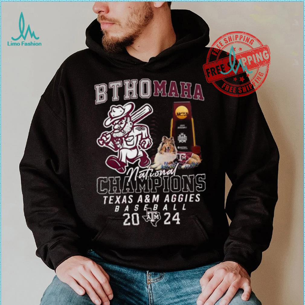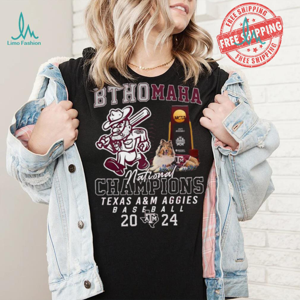 I do not remember Christmas Day itself that year, but the events around theOfficial Bthomaha National Champions Texas A&M Aggies Baseball 2024 shirt this holiday changed my life forever. I was living in Los Angles at the time and was dirt poor as I was very underemployed. I did not have any ambition, but was content. I had a new girl friend (we had been dating for not yet six weeks). I was too poor to buy a Christmas tree. It had been raining for about a week, and was expected to raining for the next week (for those of you that do not know the weather for Los Angeles, this was highly unusual). Three days before Christmas I was driving around with my girlfriend doing some last minute Christmas shopping, when an announcement came on the radio that they were giving away free Christmas trees at a location about one half mile from where we were. I looked at my girlfriend and she said, “Yes, let’s go get a Christmas tree” A couple left turns later, there we were. There was a truck with two trailers full of Christmas trees trying to give them away. The owner of the property where the truck was park had call the police and wanted them to be charged with trespassing. He had Christmas tree lot down the street and this was killing his business.