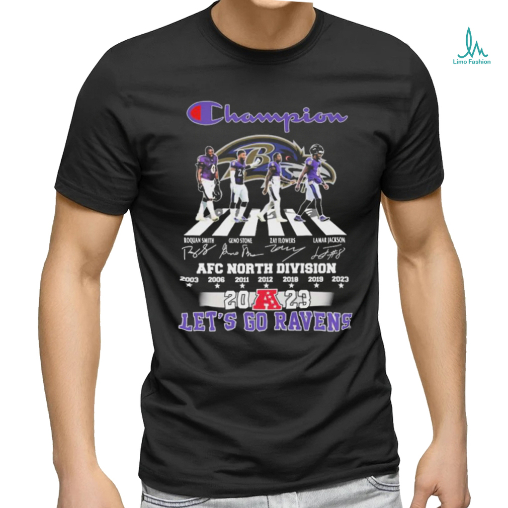 Official champion Baltimore Ravens Abbey Road AFC North Division Champions 2023 Let’s Go Ravens Shirt1 is a must-have for any Funny who loves all things teejeep. These shirts typically feature popular Trenđing Shirt characters, quotes, or logos, and come in a range of styles and colors to suit any taste. Some designs may even feature the dad’s favorite Trending or characters, making them a personalized and thoughtful gift.