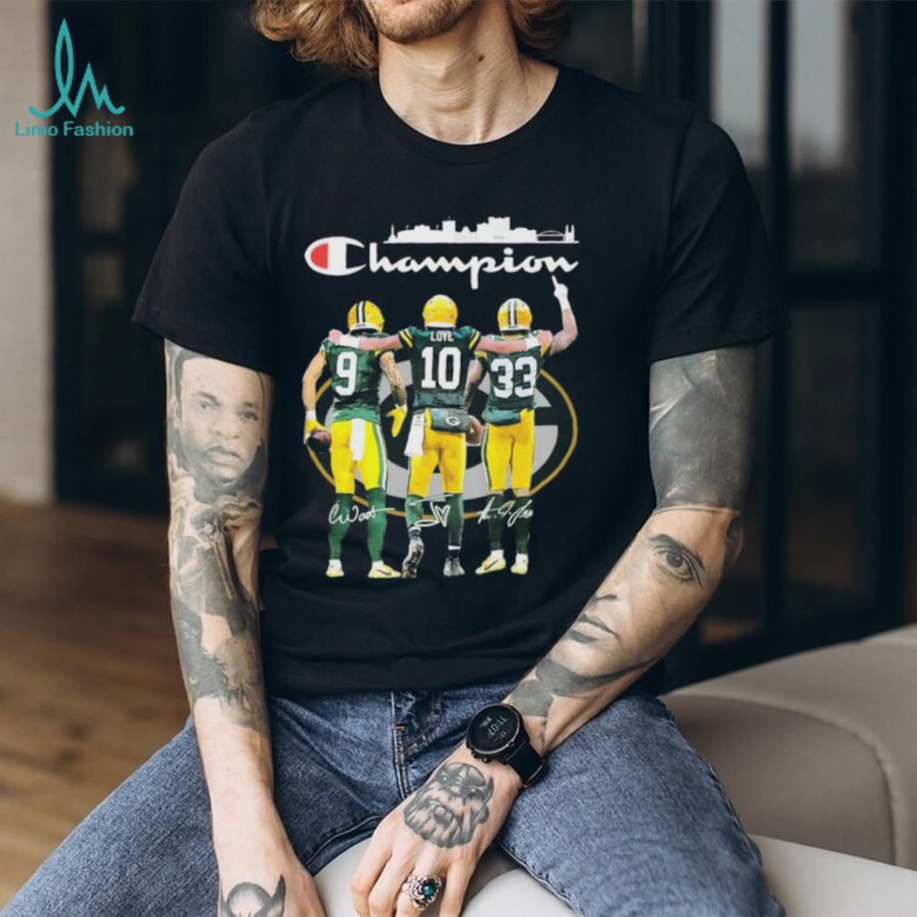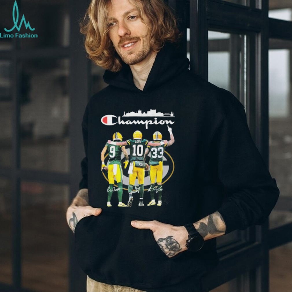()Official Champion Green Bay Packers Christian Watson, Jordan Love and Aaron Jones Signatures Shirt, Hoodie, Sweater, Vneck, Unisex and T-shirt