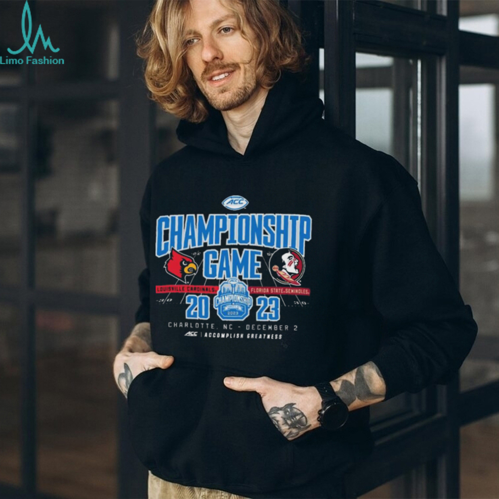 The Official charlotte, NC 2023 ACC Championship Game Louisville Cardinals vs Florida State Seminoles Shirt to answering your question is experience. We exist to experience; we know we exist because we experience our own existence. The second key is observation. We observe our existence, our experience. We witness, record, and reflect upon our experience. The third key is intention. From observations of our experiences, we build a theory of “reality”, and make choices to act or not act based on that theory. We form an intention to create a specific experience that we want to observe. Now we have a sufficient solution to the problem. Experience, observation, and intention together create reality. They cannot exist without each other. None is more fundamental than the other, and none can be removed without destroying the others. Experience, observation, and intention: the grand experiment. We exist to try things, experience them, and observe the result. There is no meaning beyond that; when we are gone, all those things are gone too. We should use the little time we have to make as many experiments as possible. We have been blessed with the opportunity to experience, observe, and intend, and we should not waste it.