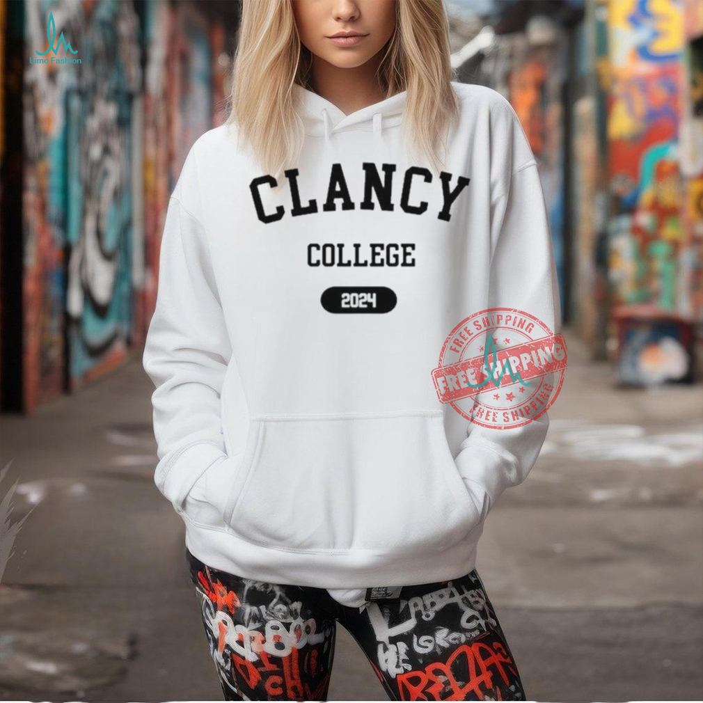 My suggestions are to Official Clancy college 2024 T shirt each girl to make both a written and a face to face apology that includes accepting her responsibility for what happened. Such as, “I’m sorry I cut your hair. It was wrong and I was wrong for doing this. Please forgive me for assaulting you while you were asleep. Then have each girl commit to paying the same amount, the amount it costs to have a nice hair style then put the excess money towards a charity helping children.