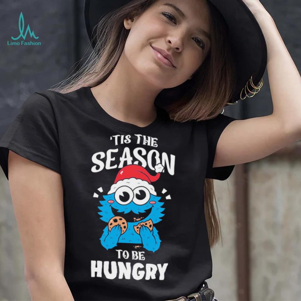 Official cookie monster hat santa tis the season to be hungry christmas shirt