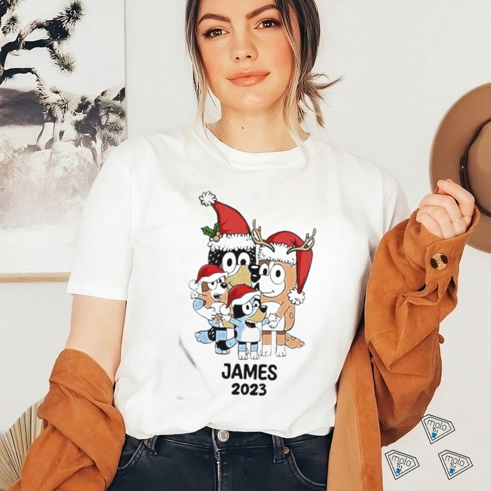 ()Official Custom Kid Name Bluey Family 2023 Christmas Ceramic T Shirt, Hoodie, Sweater, Vneck, Unisex and T-shirt