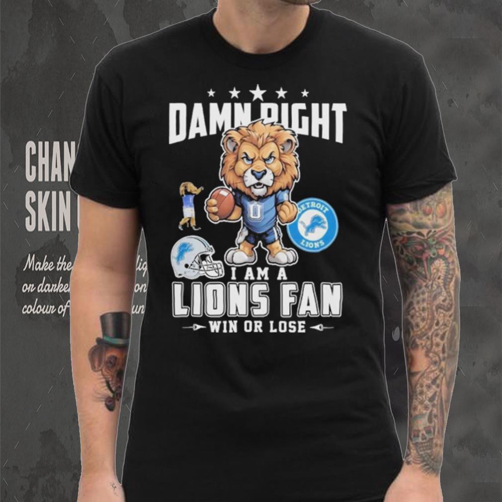Official Damn Right I Am A Detroit Lions Fan Win Or Lose Mascot Shirt