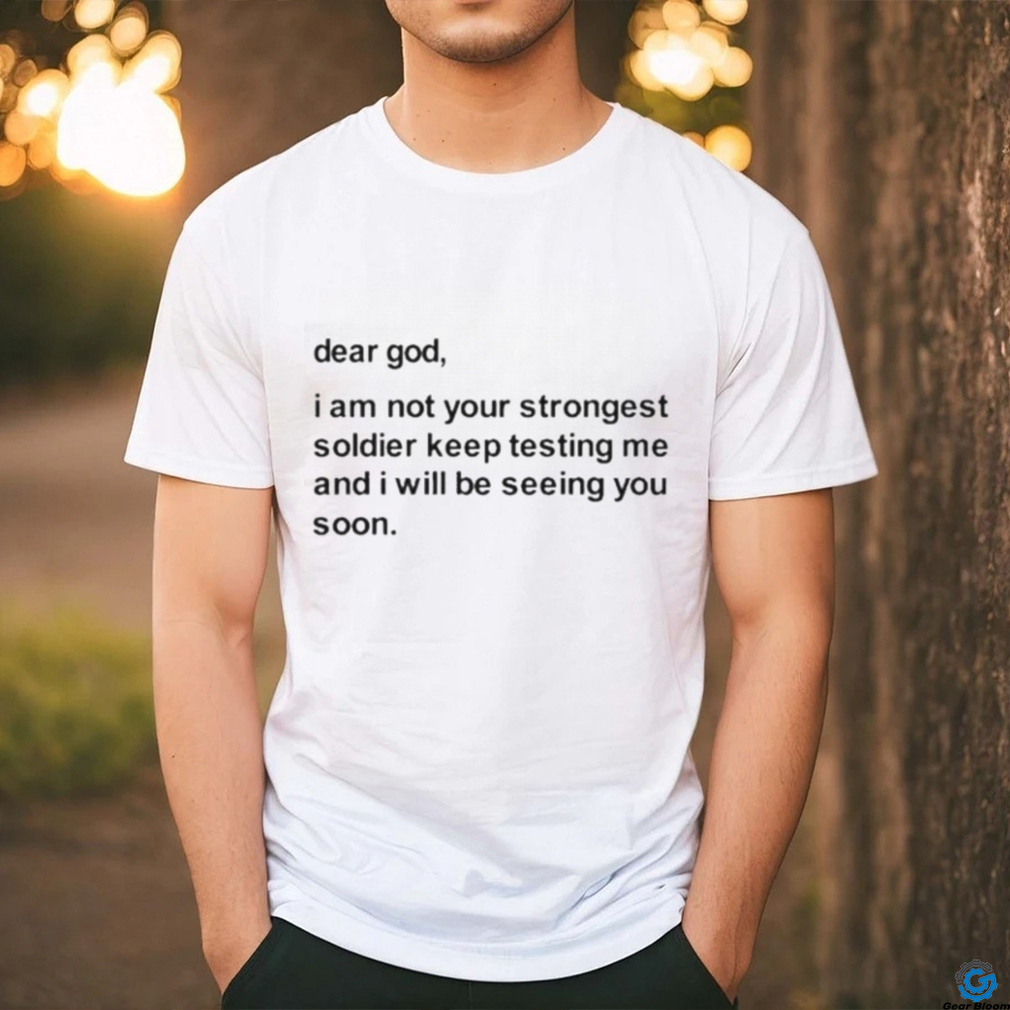 Official Dear God I Am Not Your Strongest Soldier Keep Testing Me Tee Shirt