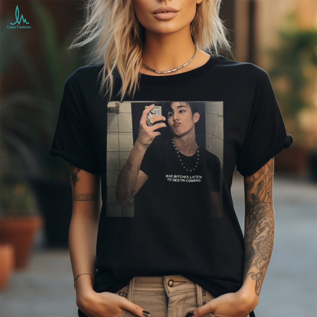 The second time (a couple of months later) she Official Destin Conrad Photo Intak P1harmony Wearing Bad Bitches Listen To Destin Conrad Shirt On Shirt back with no collar. The elastic must have broken again, and she left it in situ. We waited for several days, hoping she would bring it back, but she didn’t. So we went and bought another collar and put it on. This must have jogged her memory, and within a couple of hours she came right to the back door again – holding the old collar in her mouth.