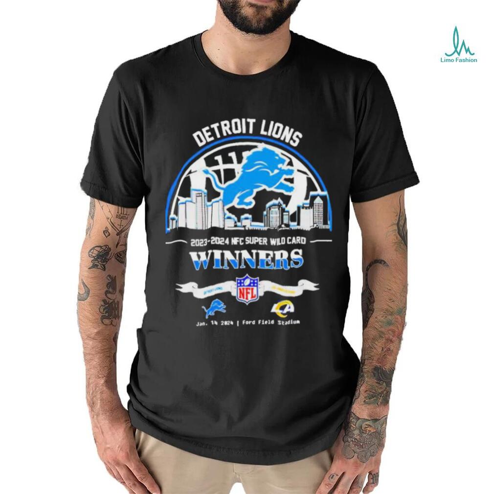 Official Detroit Lions 2023 2024 NFL Super Wild Card Winners Skyline NFL Playoffs Divisional Shirt