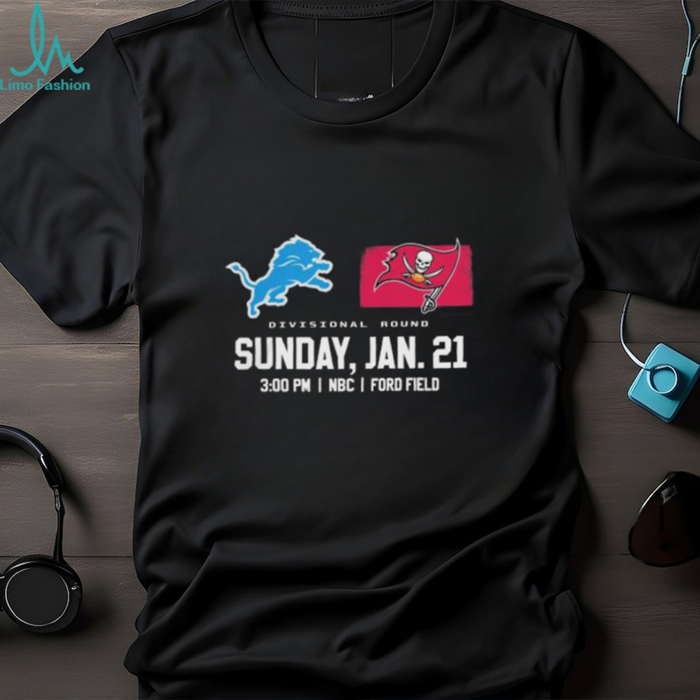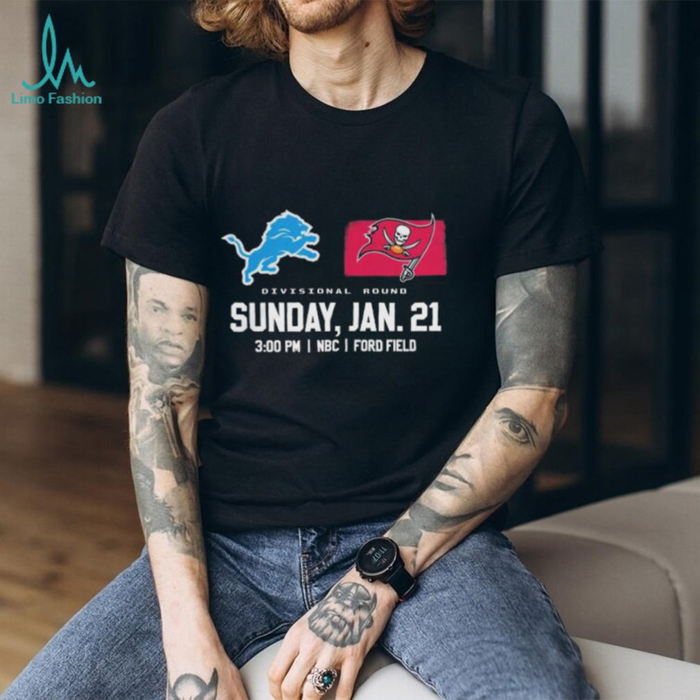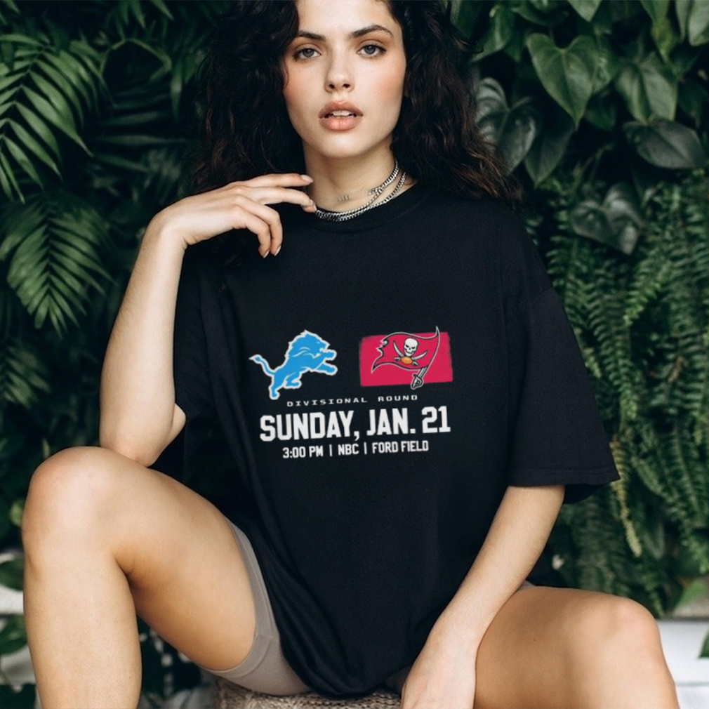You can wear whatever you want, but remember: This is the office party. This is a Official Detroit Lions vs Tampa Bay Buccaneers 2023 Super Divisional Round Shirt of people with whom you work, so if you wouldn’t wear a revealing dress to work, don’t wear it to the office party. Also, don’t drink much you presumably know your limit, so stop well short of it. Because again—you work with these people. When I worked at TV Guide, senior staff regularly attended the Christmas parties, which (at least at the beginning) were lavish, usually held in off-site venues and allowed employees to bring spouses. You don’t want your boss’s boss asking who that was—the girl in the thigh-high bandage dress and hooker heels or the guy who threw up on the white-glitter sparkle Christmas tree. Women get the brunt of the judgmental post-party gossip about attire while men generally have to do something memorably bad, but I imagine a male manager showing up in gold lame hot pants would cause a stir in most business environments.