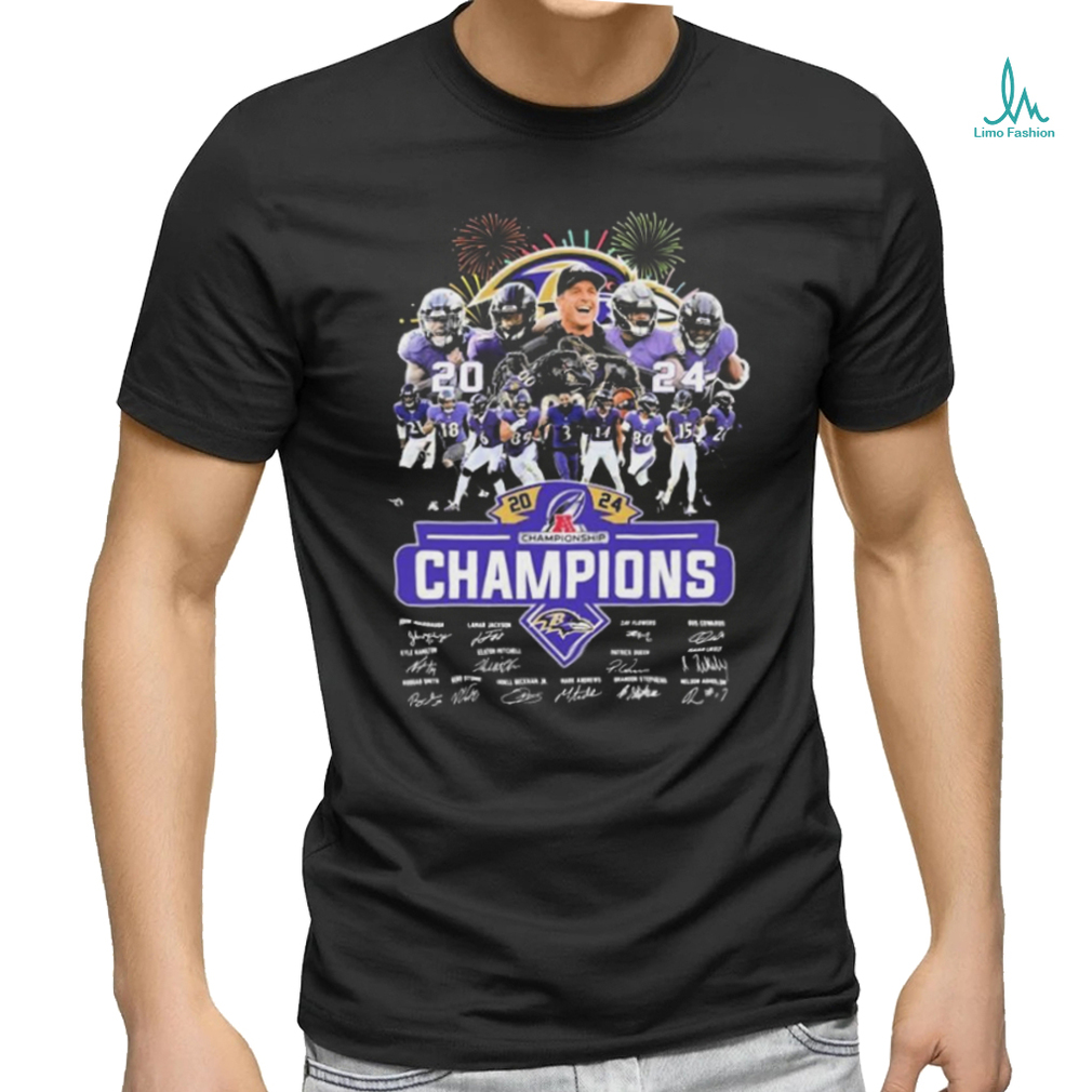 Official firework Baltimore Ravens Team 2024 AFC Champions Signatures Shirt, Hoodie, Sweater, Vneck, Unisex and T-shirt