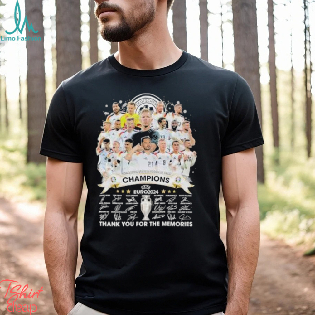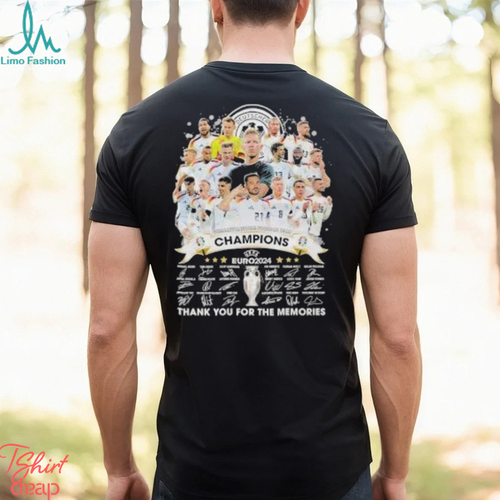 Both Christmas day and New Year’s day are paid holidays for both Canada and US. Christmas Eve and New Year’s Eve do not belong to public holidays although Monday, December 24, 2018 has been declared a Official Germany Football Team Champions Euro 2024 Thank You For The Memories Signatures Shirt holiday by the US government. Most businesses open on normal hours during these two days. Grocery stores, post offices, department stores, specialty stores, pharmacies, convenience stores, malls, transportation services, banks, movie theaters, public libraries, YMCA, walk-in clinics and many other services are all open during the day or even late in the evening during the Christmas Eve. Procrastinating people take advantage of this last-minute to buy Christmas gifts for family members or friends or the missing gradients for the Christmas’s dinner party. Many employees work normally during these two days. I remember I insisted on working on December 24th while working with Transcanada Pipelines. I finished a little bit earlier that day because it was Christmas Eve. I worked regularly from 9–5 on New Year’s eve. I was all paid regularly.