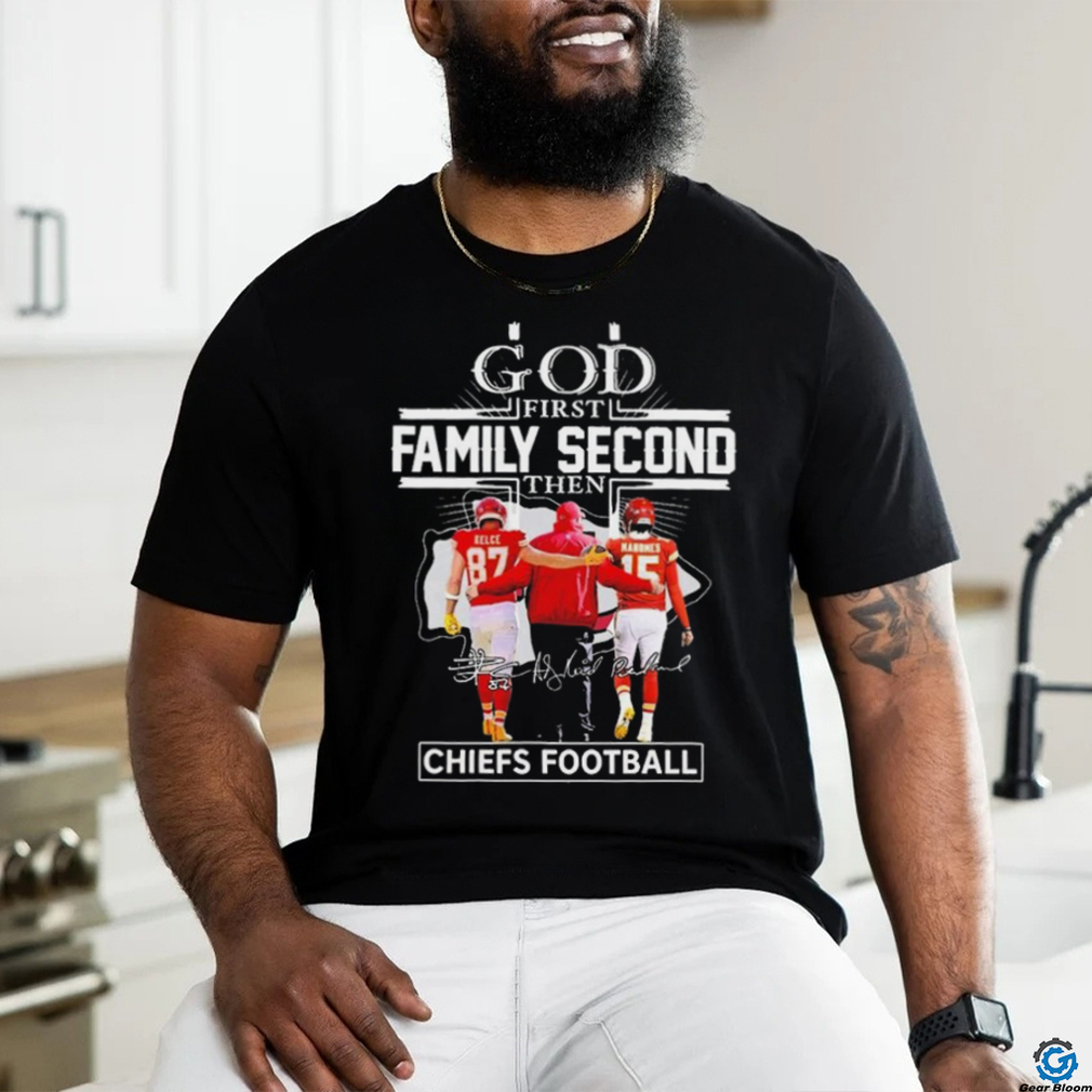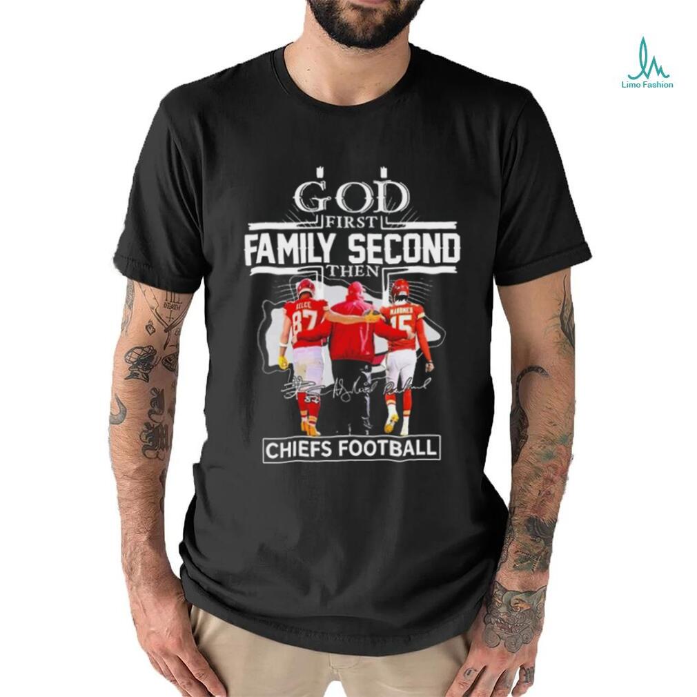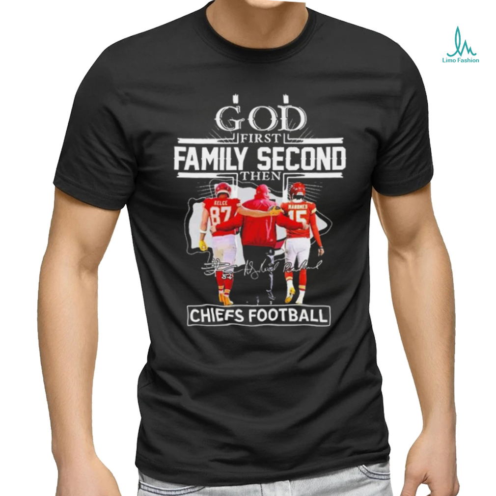 Best Official god First Family Second Then Kansas City Chiefs Travis Kelce, Patrick Mahomes and andy Reid Signatures shirt