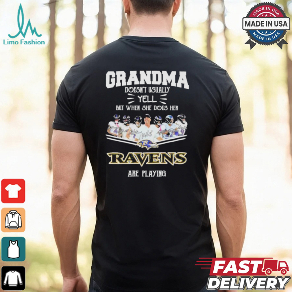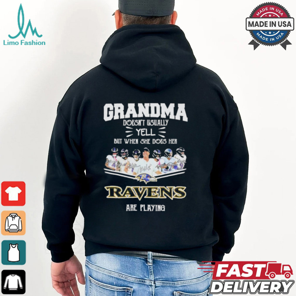 Official Grandma Doesn’t Usually Yell But When She Does Her Baltimore Ravens Are Playing 2024 Signatures Shirt hoodie, tank top, sweater and long sleeve t-shirt
