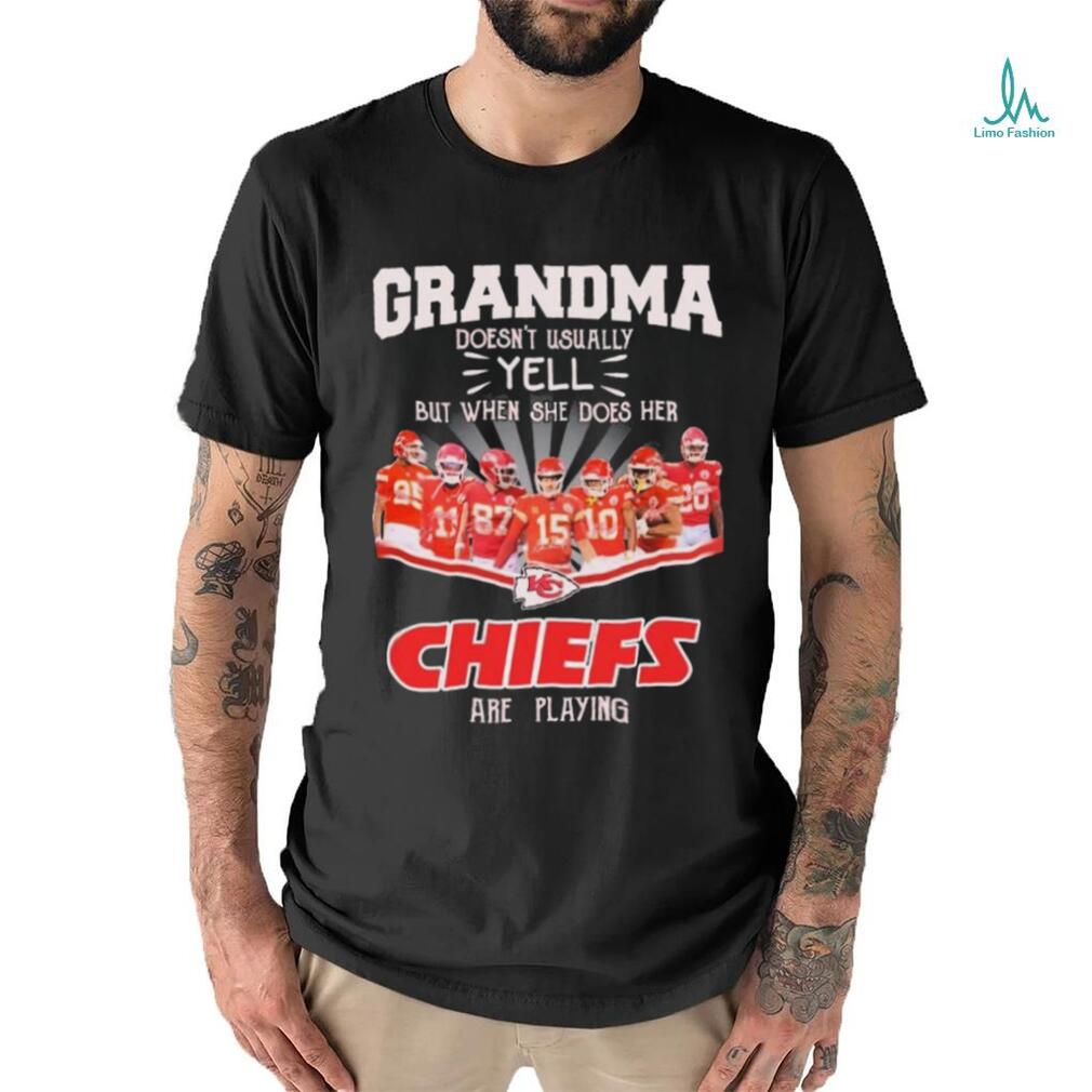()Official grandma Doesn’t Usually Yell But When She Does Her Kansas City Chiefs Are Playing 2023 2024 Signatures Shirt, Hoodie, Sweater, Vneck, Unisex and T-shirt