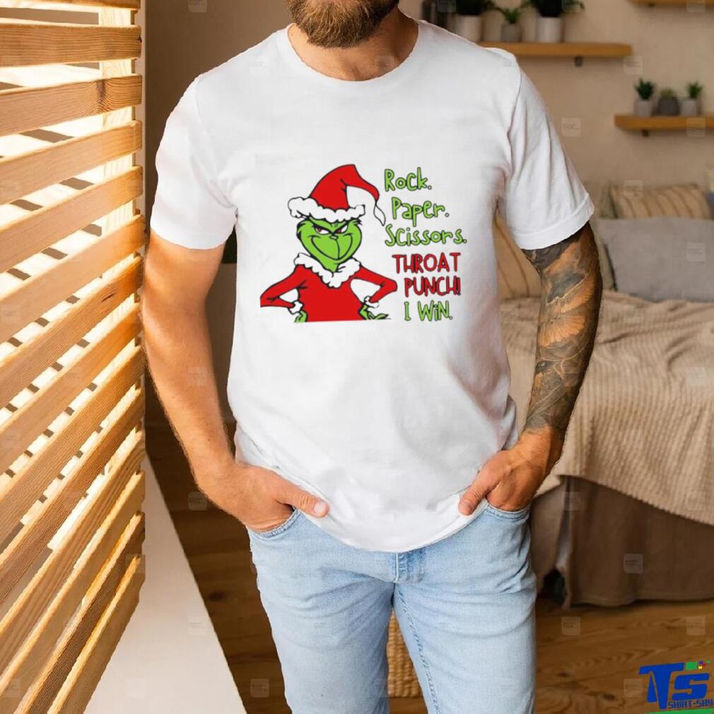 Best Official Grinch Rock Paper Scissors Throat Punch I Win Christmas Grinch T Shirt