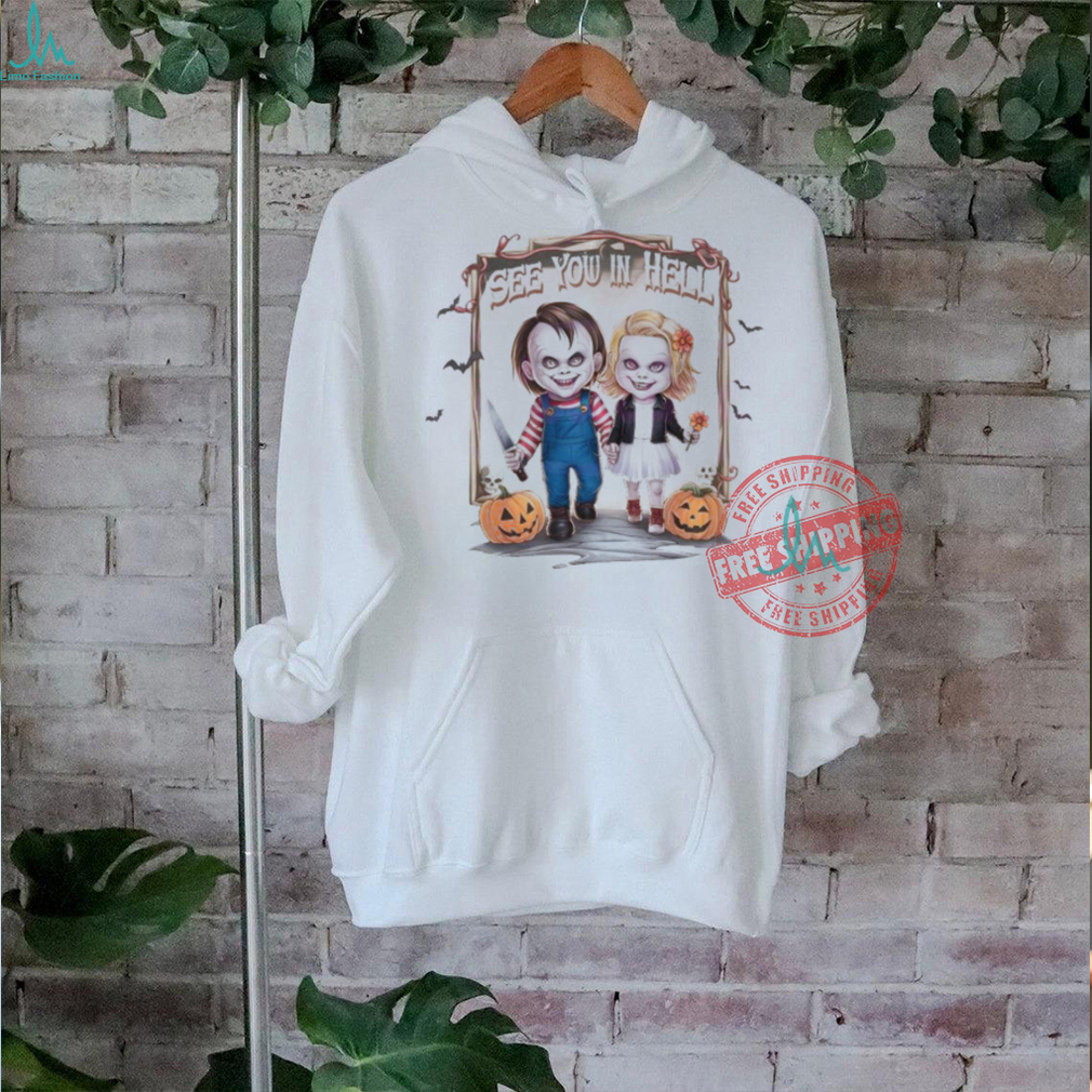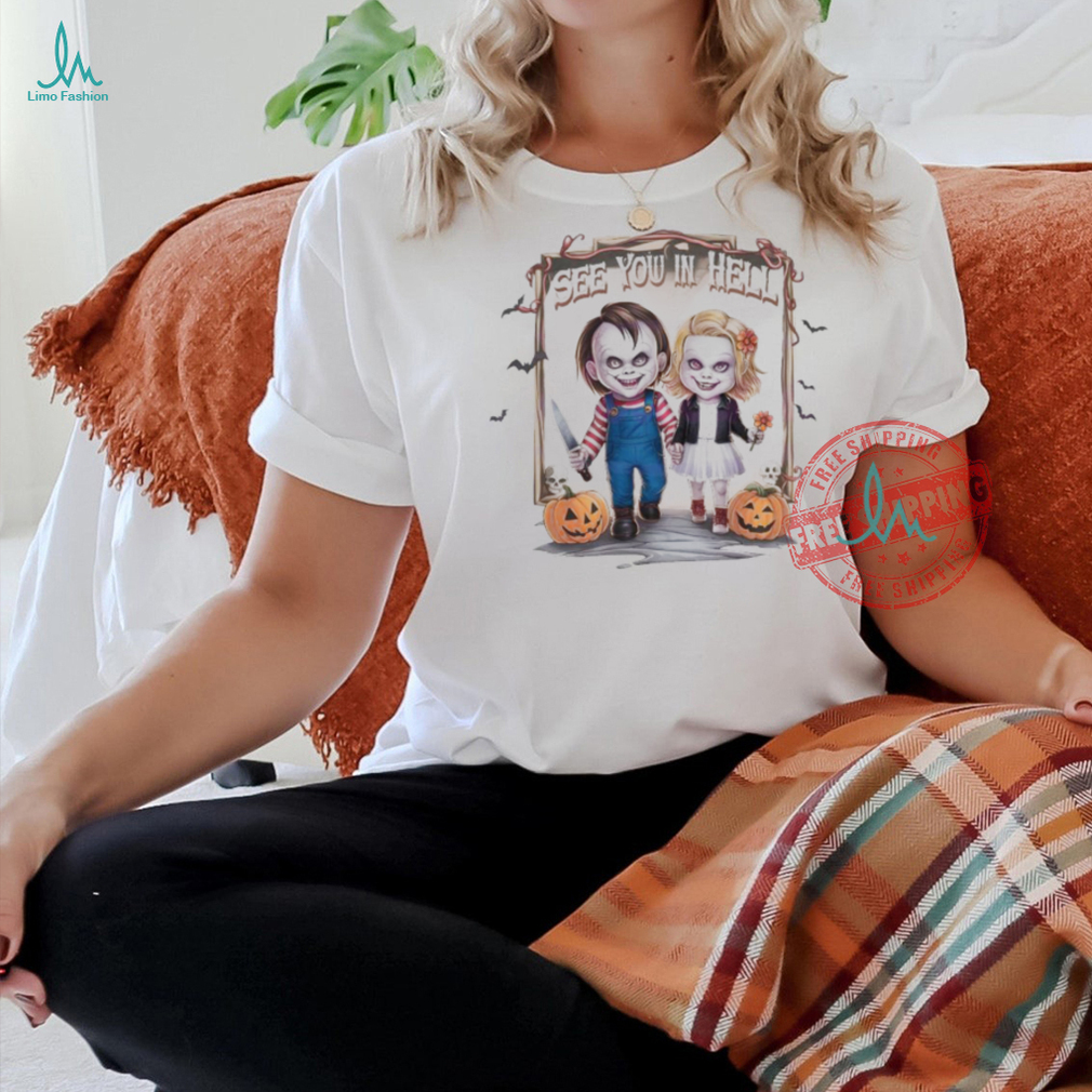 Since on occasion it is difficult to pinpoint the specific reason for Official Horror Characters Chucky See You In Hell Halloween T Shirt , explaining unexplained yelping may represent a few difficulties. In the event that your pooch is yapping for consideration, the best game-plan is to disregard the woofing and imagine it isn’t occurring. Ensure your pooch is getting enough exercise, mental incitement and every one of his needs are met.