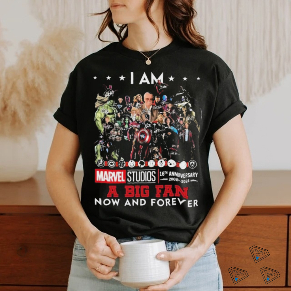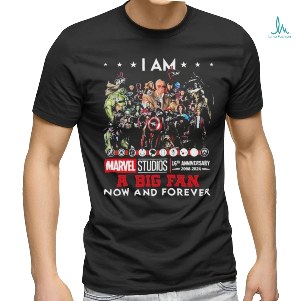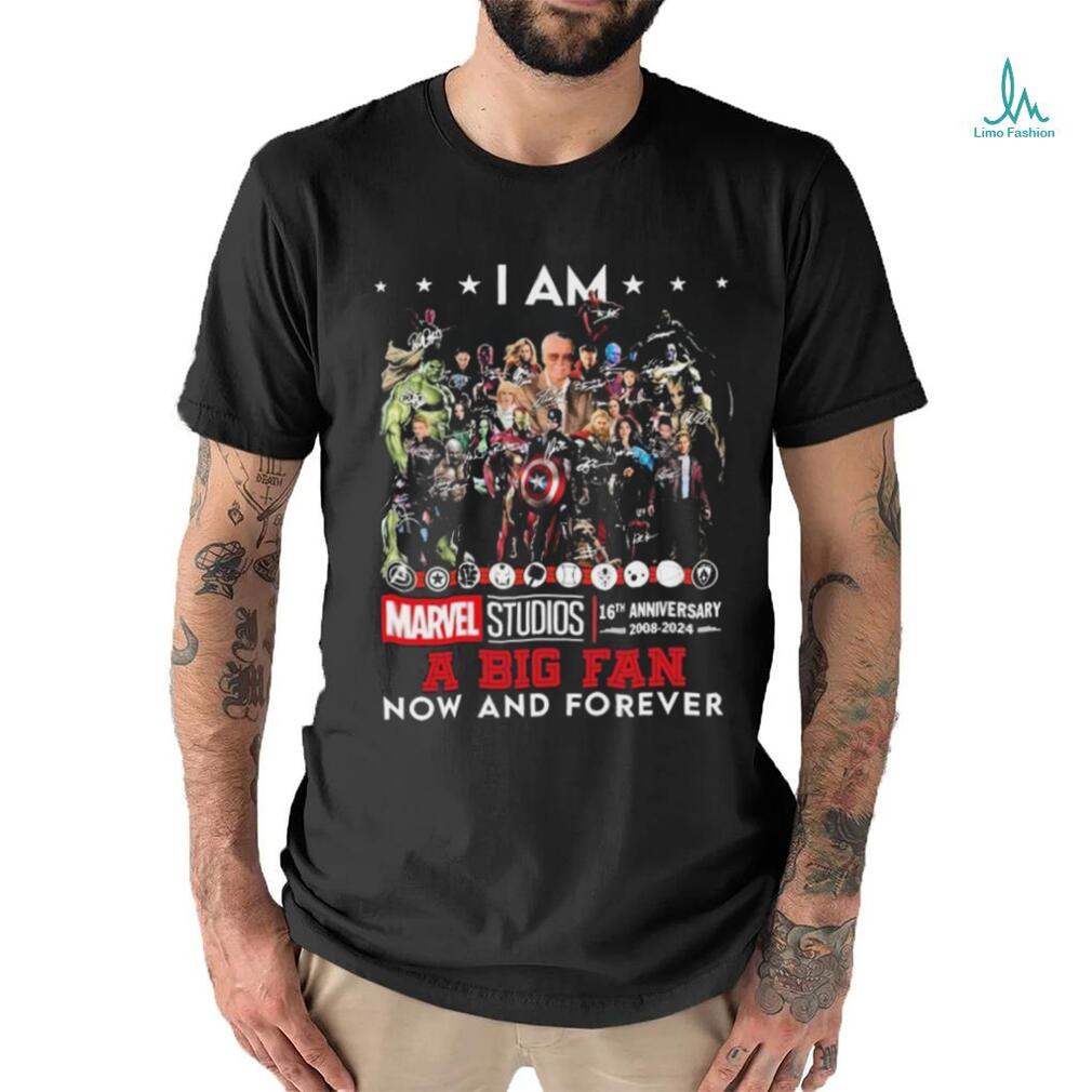 Official i Am Marvel Studios 16th Anniversary 2008 2024 A Big Fan Now And Forever Signatures Shirt