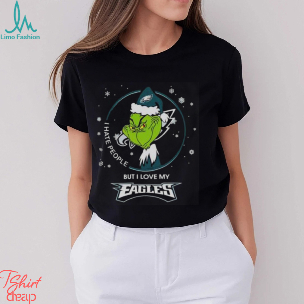 Official I Hate People But I Love My Philadelphia Eagles Grinch Christmas T Shirt