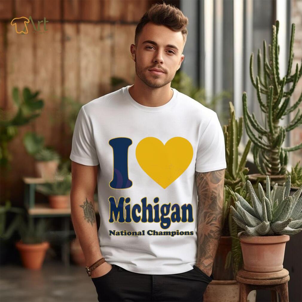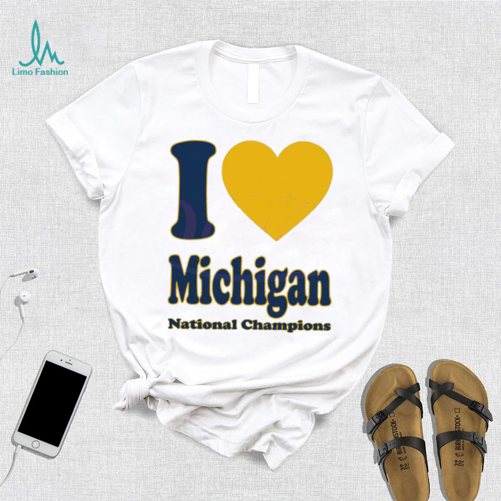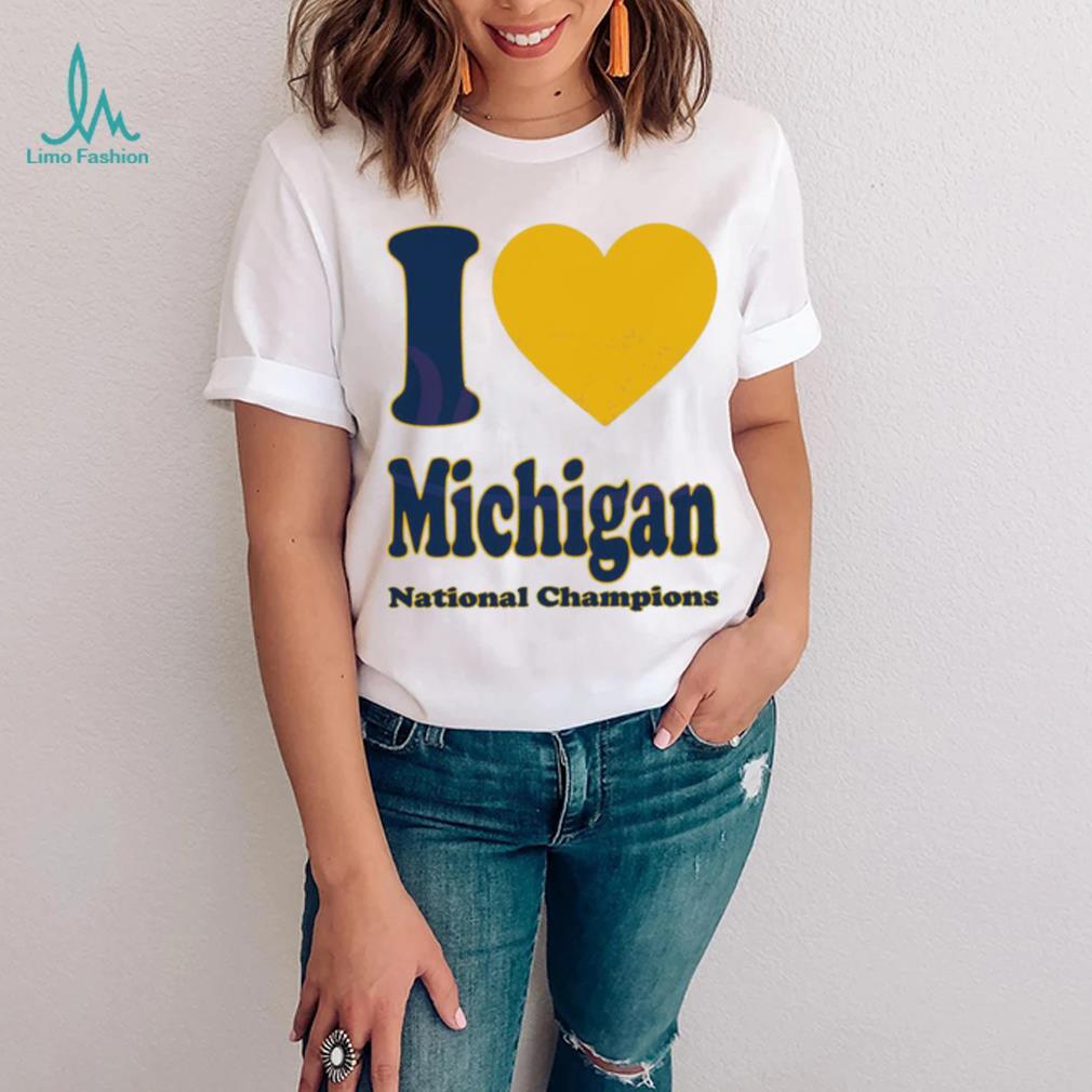 I do not remember Christmas Day itself that year, but the events around theOfficial I Love Michigan National Champions Shirt this holiday changed my life forever. I was living in Los Angles at the time and was dirt poor as I was very underemployed. I did not have any ambition, but was content. I had a new girl friend (we had been dating for not yet six weeks). I was too poor to buy a Christmas tree. It had been raining for about a week, and was expected to raining for the next week (for those of you that do not know the weather for Los Angeles, this was highly unusual). Three days before Christmas I was driving around with my girlfriend doing some last minute Christmas shopping, when an announcement came on the radio that they were giving away free Christmas trees at a location about one half mile from where we were. I looked at my girlfriend and she said, “Yes, let’s go get a Christmas tree” A couple left turns later, there we were. There was a truck with two trailers full of Christmas trees trying to give them away. The owner of the property where the truck was park had call the police and wanted them to be charged with trespassing. He had Christmas tree lot down the street and this was killing his business.