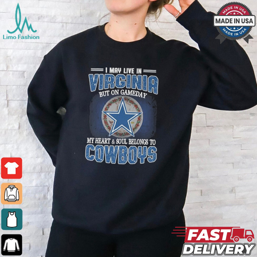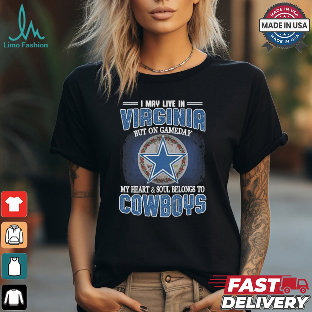 Official I May Live In Virginia But On Gameday My Heart And Soul Belongs To Dallas Cowboys Shirt