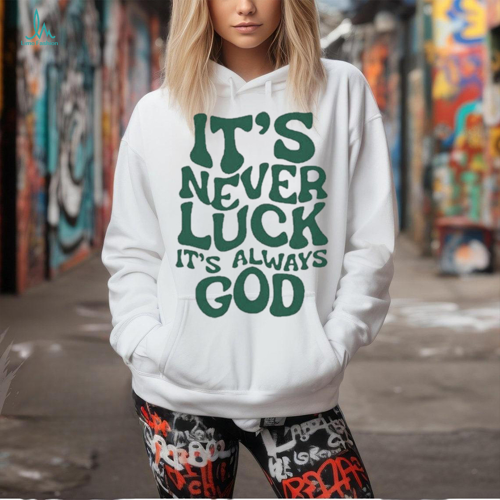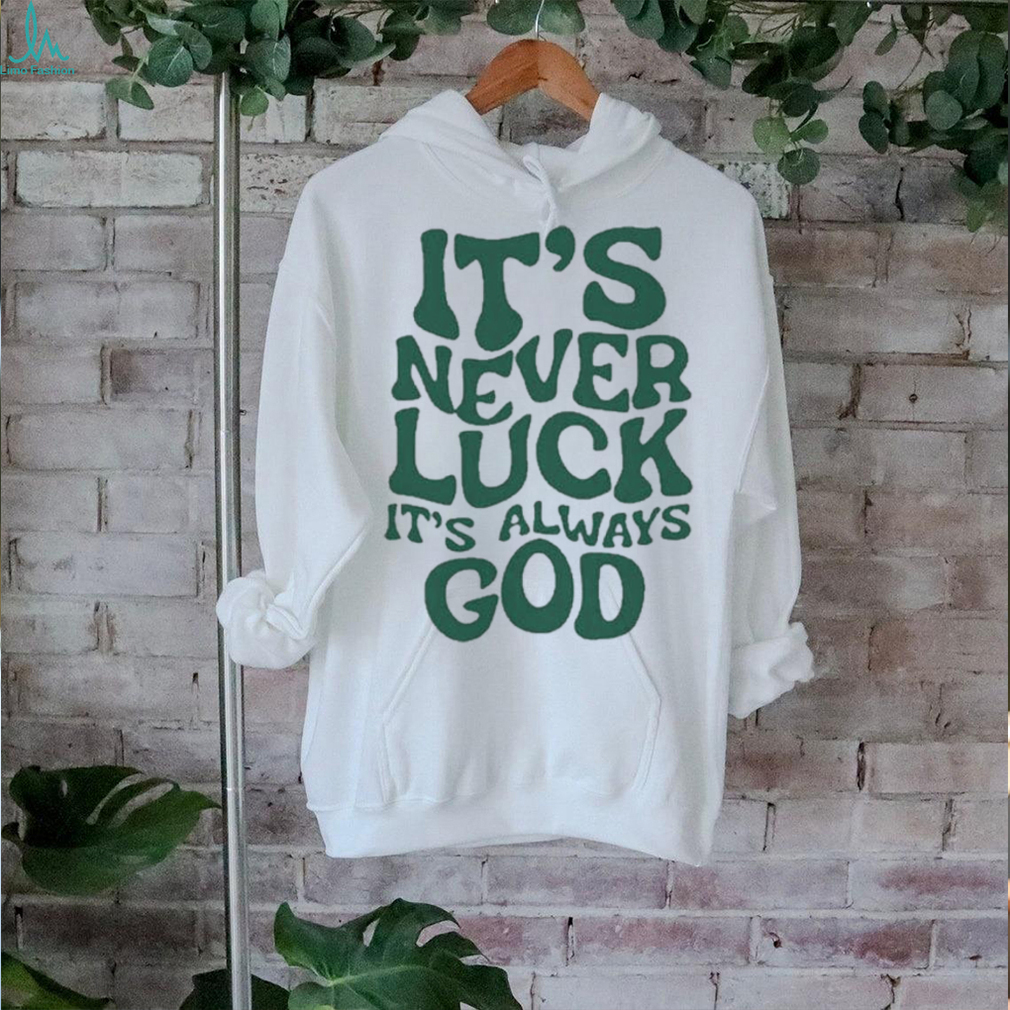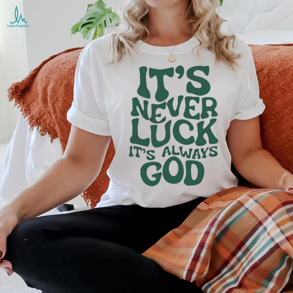 They found out that once Official Jacque Aye Wearing It’s Never Luck It’s Always God Shirt well being (i.e. physiological stability and safety are achieved) is obtained primarily, people will start to compare with each other automatically (it can be viewed as a pursue of self esteem, referring to the hierarchy of needs). This is the reason why kids should not be blamed for being unhappy even if they have material well-being that previous generations have not experience before.