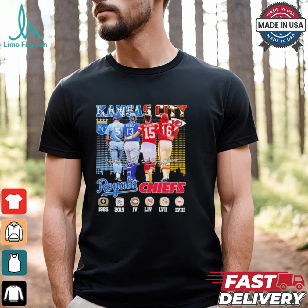 Official Kansas City Royals Brett, Perez X Kansas City Chiefs Mahomes, Dawson Signatures Shirt
