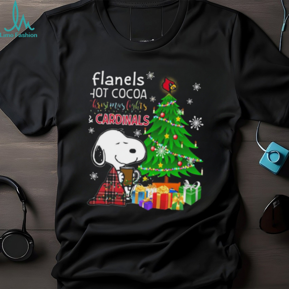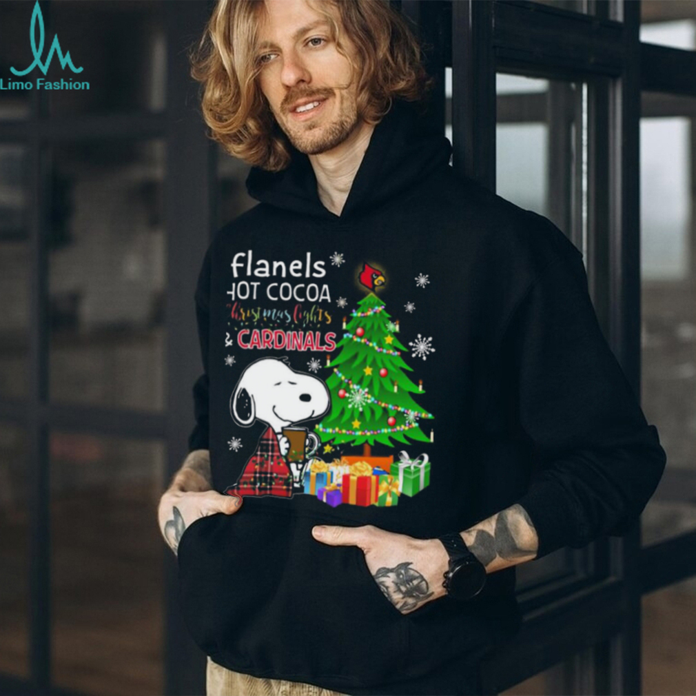 ()Official louisville Cardinals Snoopy Flannels Hot Cocoa Christmas Lights Tree T Shirt, Hoodie, Sweater, Vneck, Unisex and T-shirt